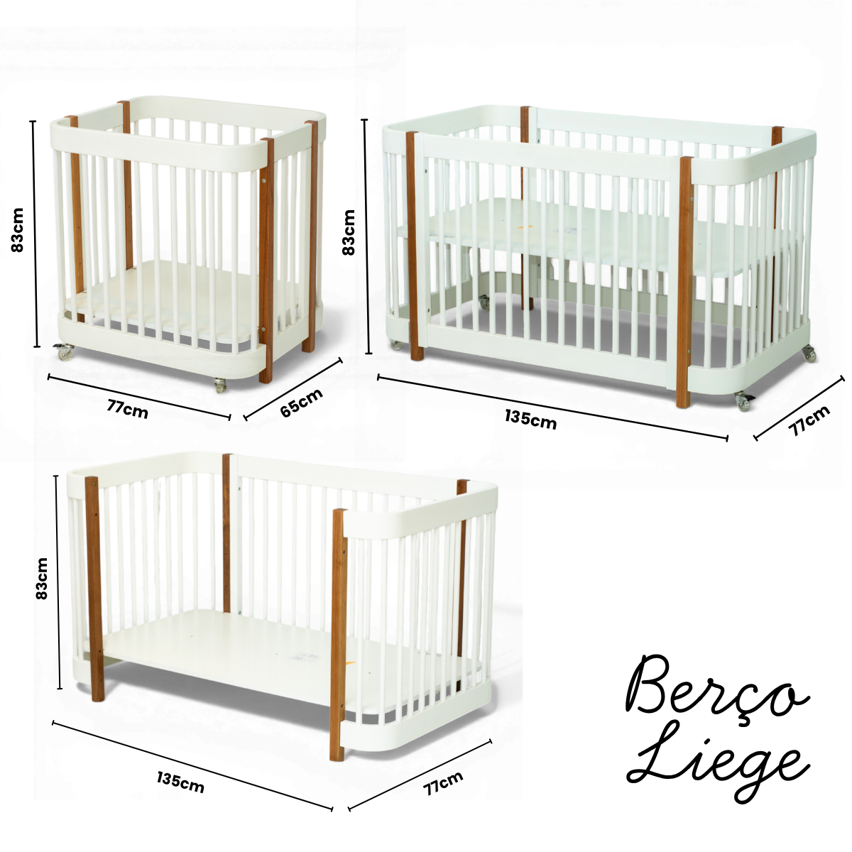 Fabricado em madeira maciça em Jequitibá e multilaminado com produção artesanal, o Berço Liege é uma peça única e durável, pensada para acompanhar o crescimento do seu bebê com segurança e sofisticação.