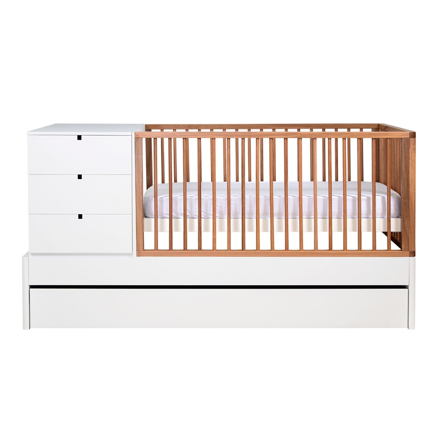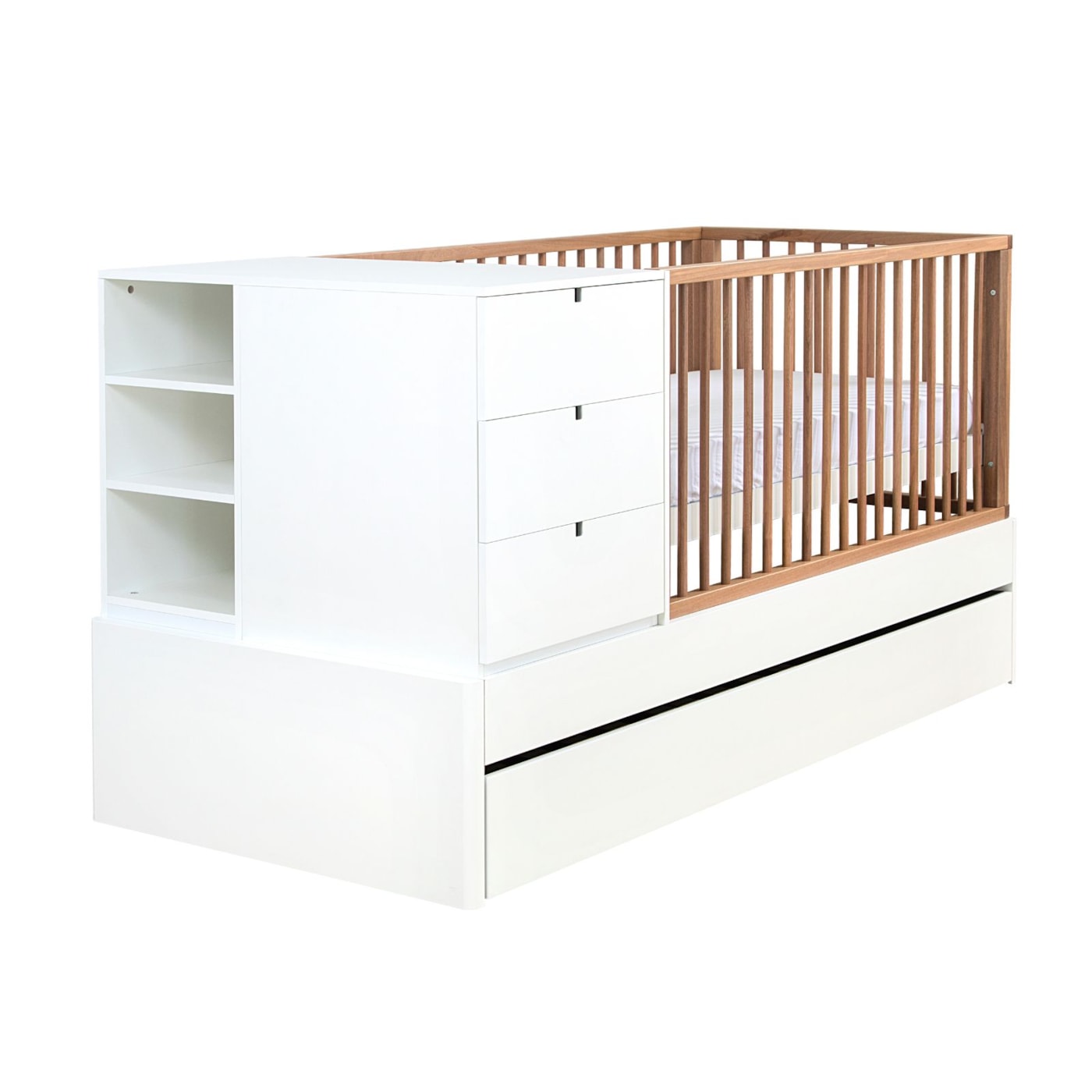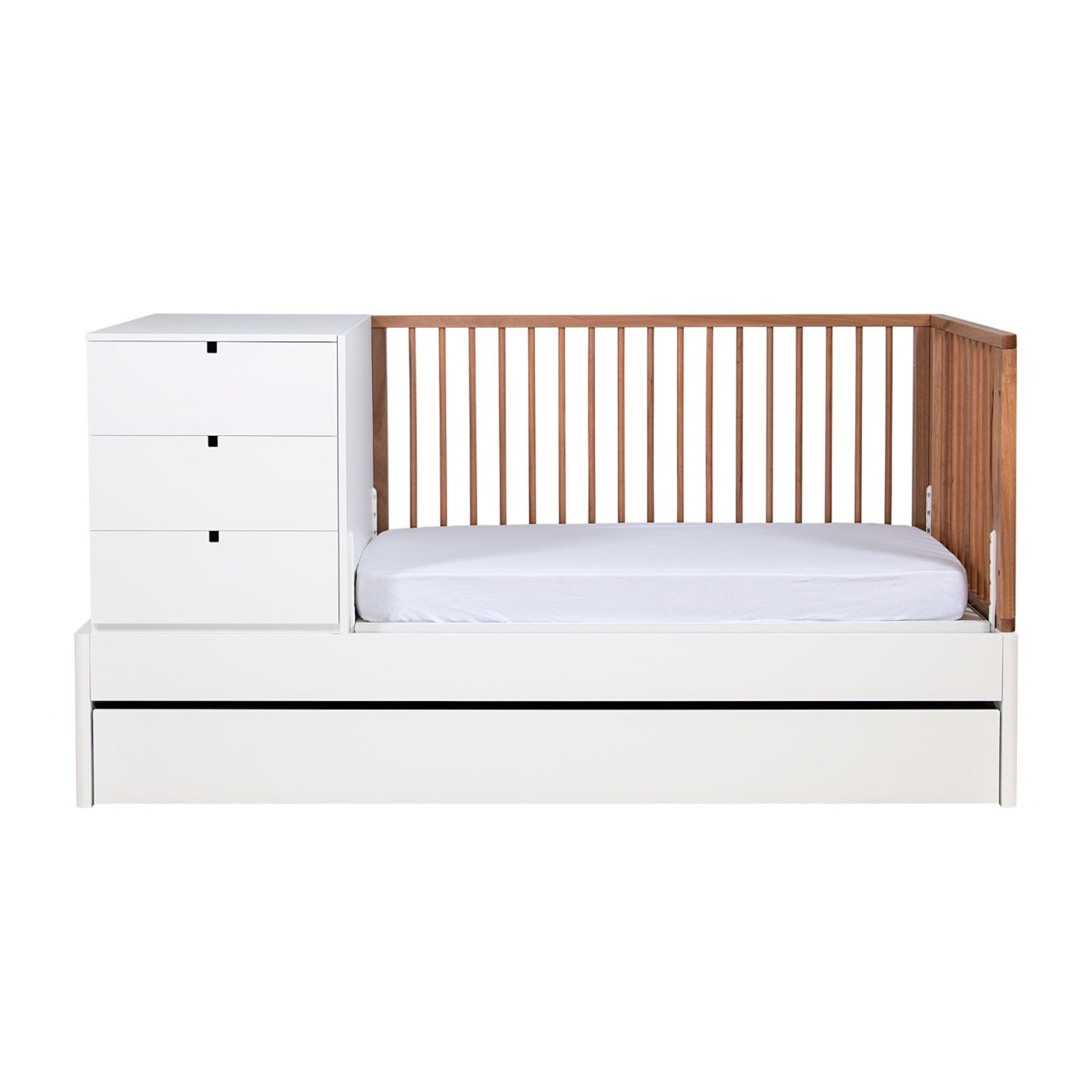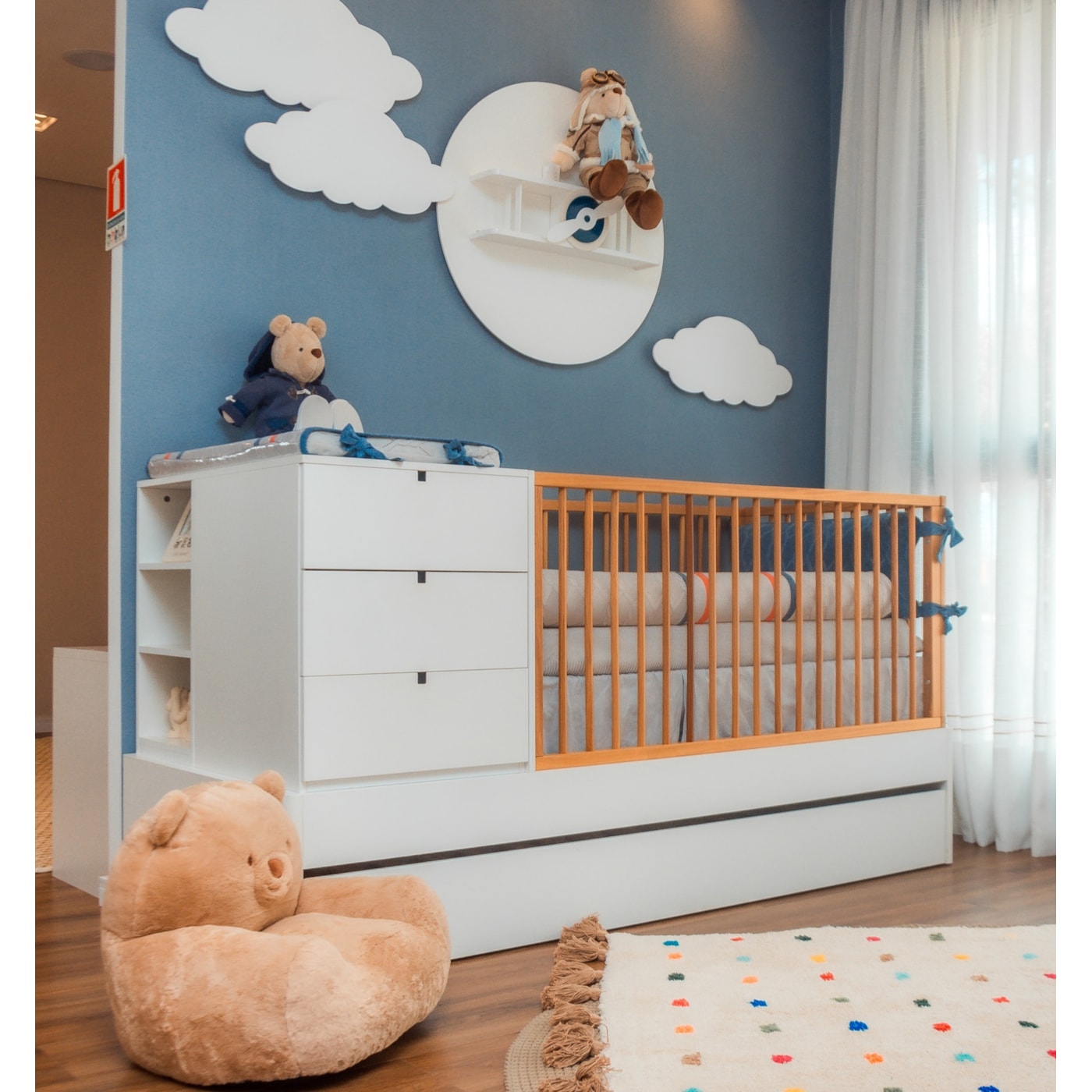 As peças são avulsas e possibilitam a transformação do berço em uma cama de solteiro, o módulo trocador se transforma em mini cômoda. Fazendo parte da decoração do quarto.