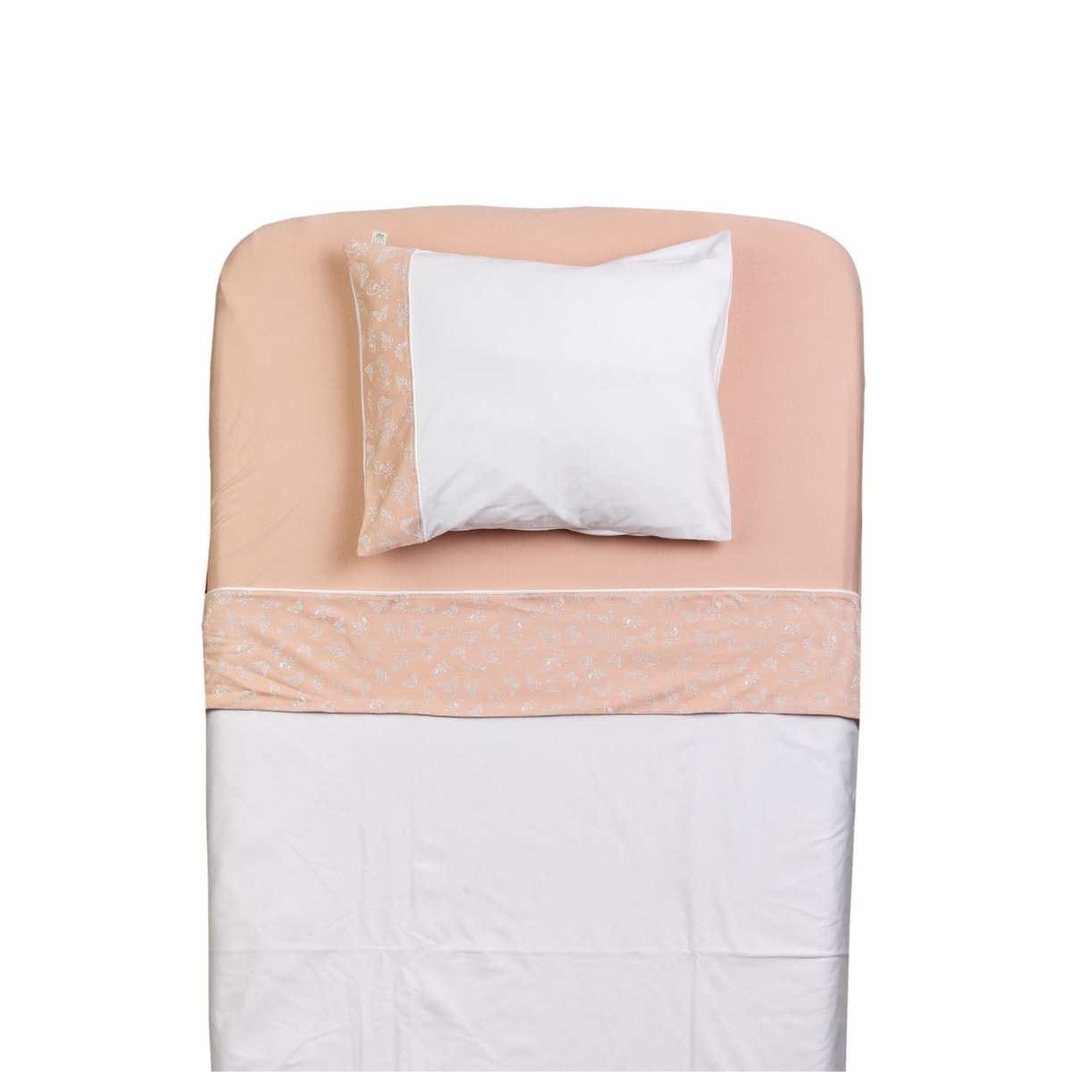 Feito em malha algodão especial, com 3 peças: lençol de baixo com elástico em todo o produto, para não escapar da cama, Lençol de cobrir e Fronha.