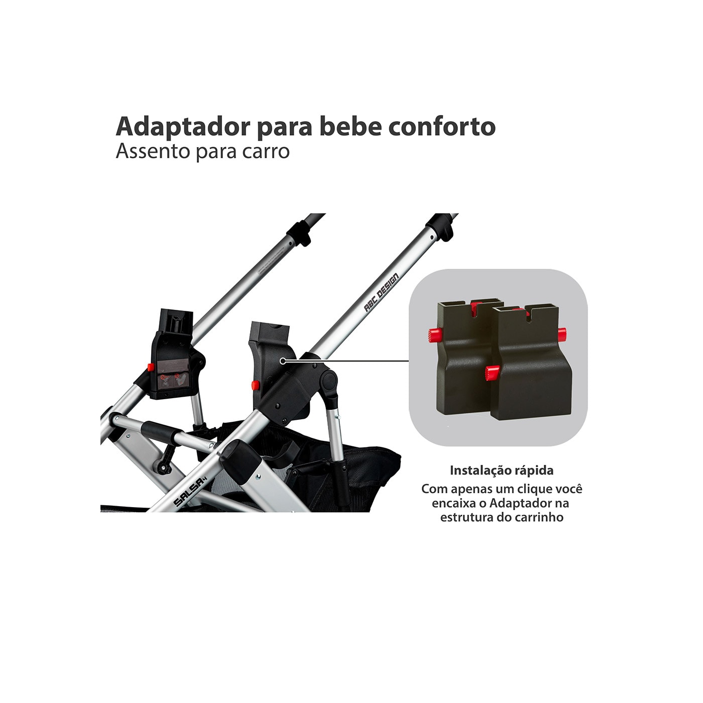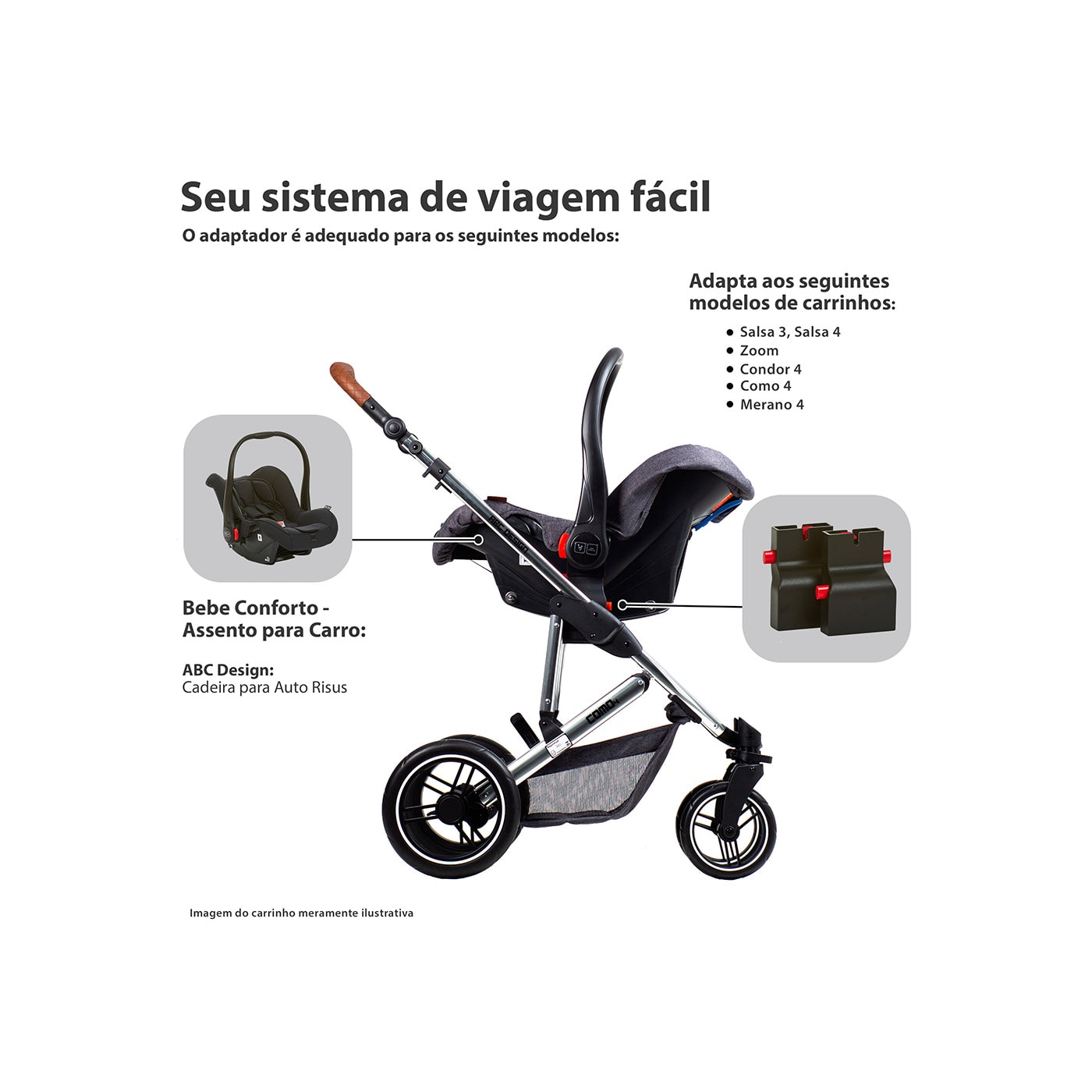Com este acessório prático, seu carrinho ABC Design pode ser facilmente convertido em um Travel System, permitindo acoplar o bebê conforto à estrutura do carrinho com apenas um clique.