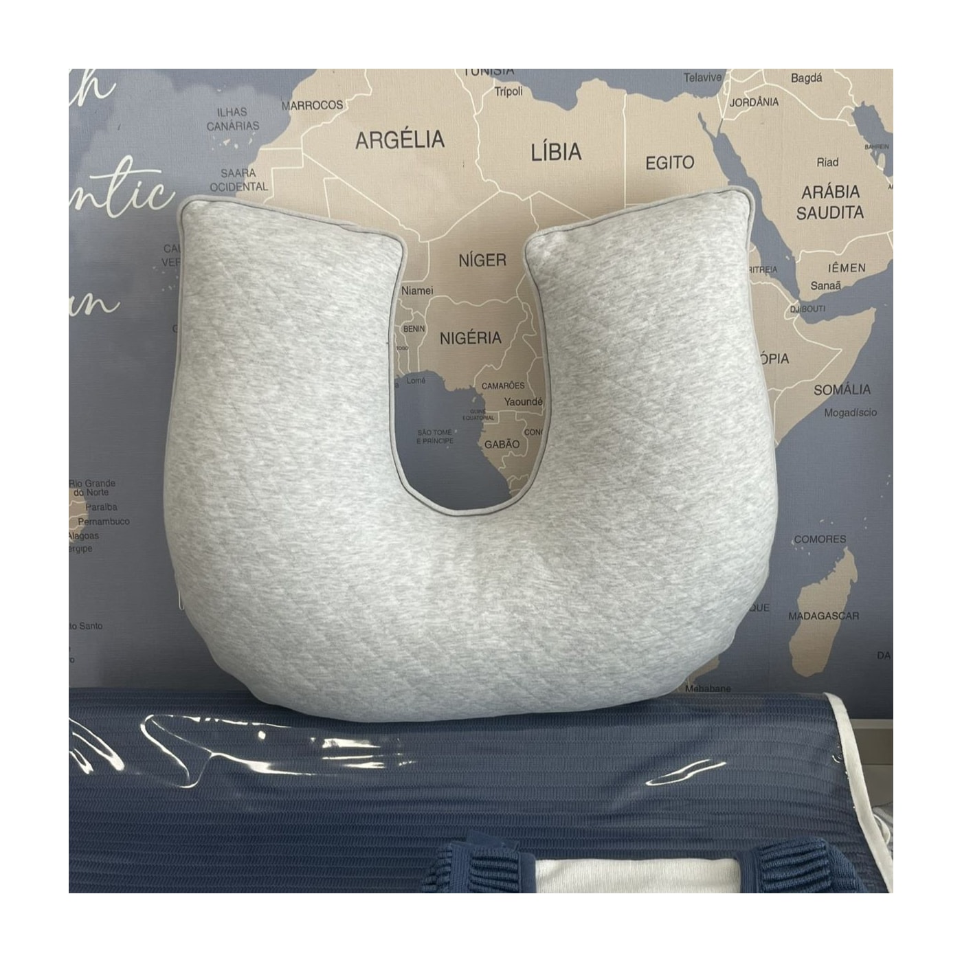 Na cor cinza mescla, é versátil e fácil de combinar, harmonizando com diversos estilos de enxoval — desde os mais neutros e minimalistas até os mais temáticos. Seu formato anatômico proporciona suporte adequado para o bebê, ajudando a manter a postura correta e reduzindo o cansaço nos braços e ombros da mamãe.