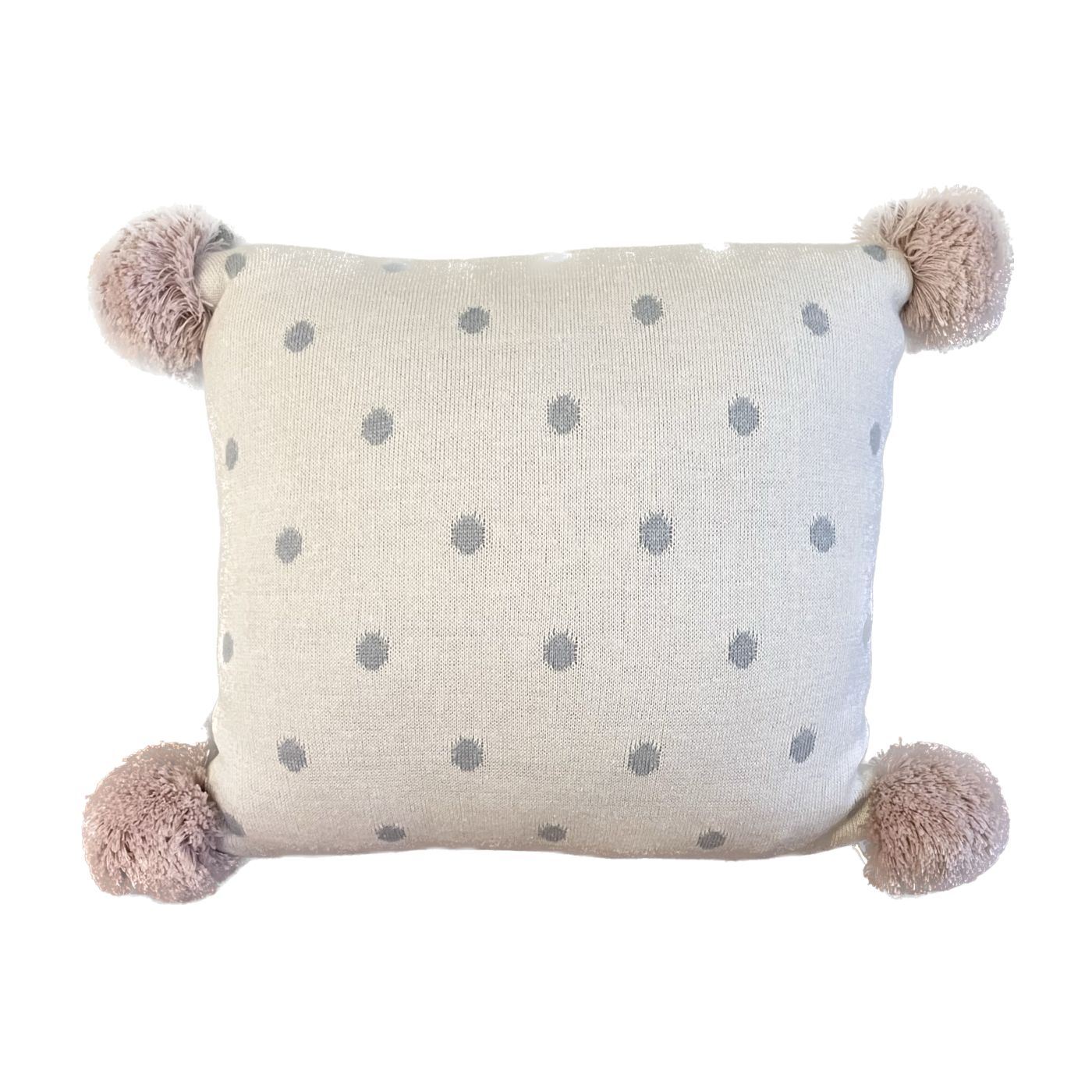 Almofada Decorativa Bolinhas Cinza e com Pompom Rosa
