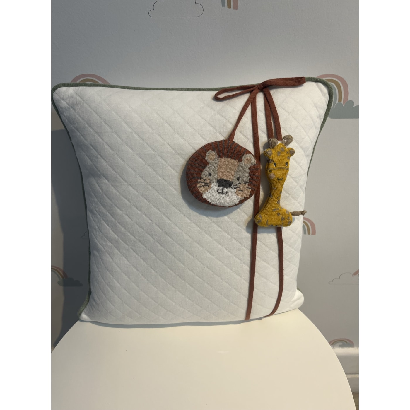 A Almofada Decorativa Lisa com Pingente de Carinha de Leão e Girafa é o detalhe que transforma o quarto infantil em um ambiente ainda mais encantador! Com design minimalista e toque lúdico, ela une delicadeza e diversão em uma peça versátil e cheia de charme.