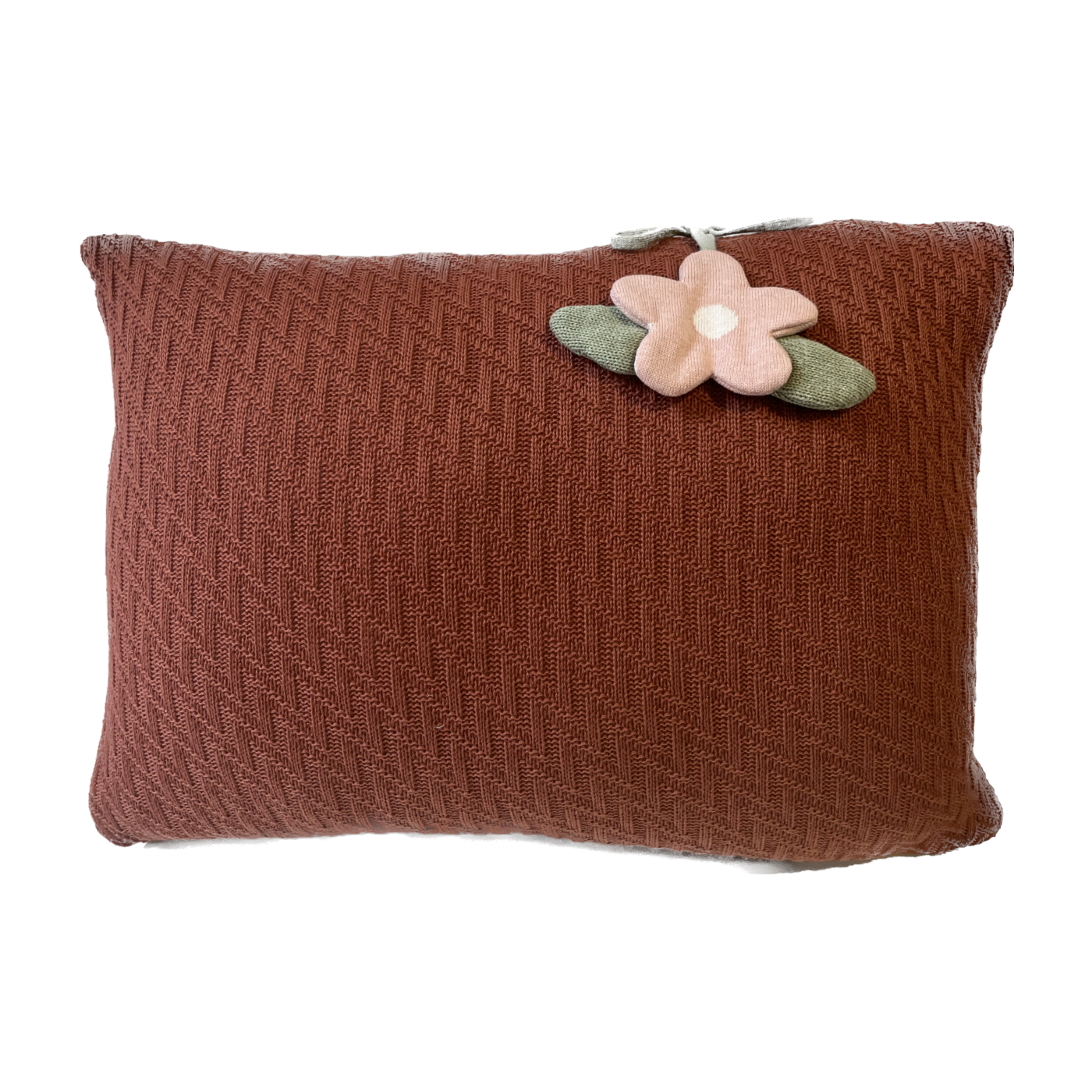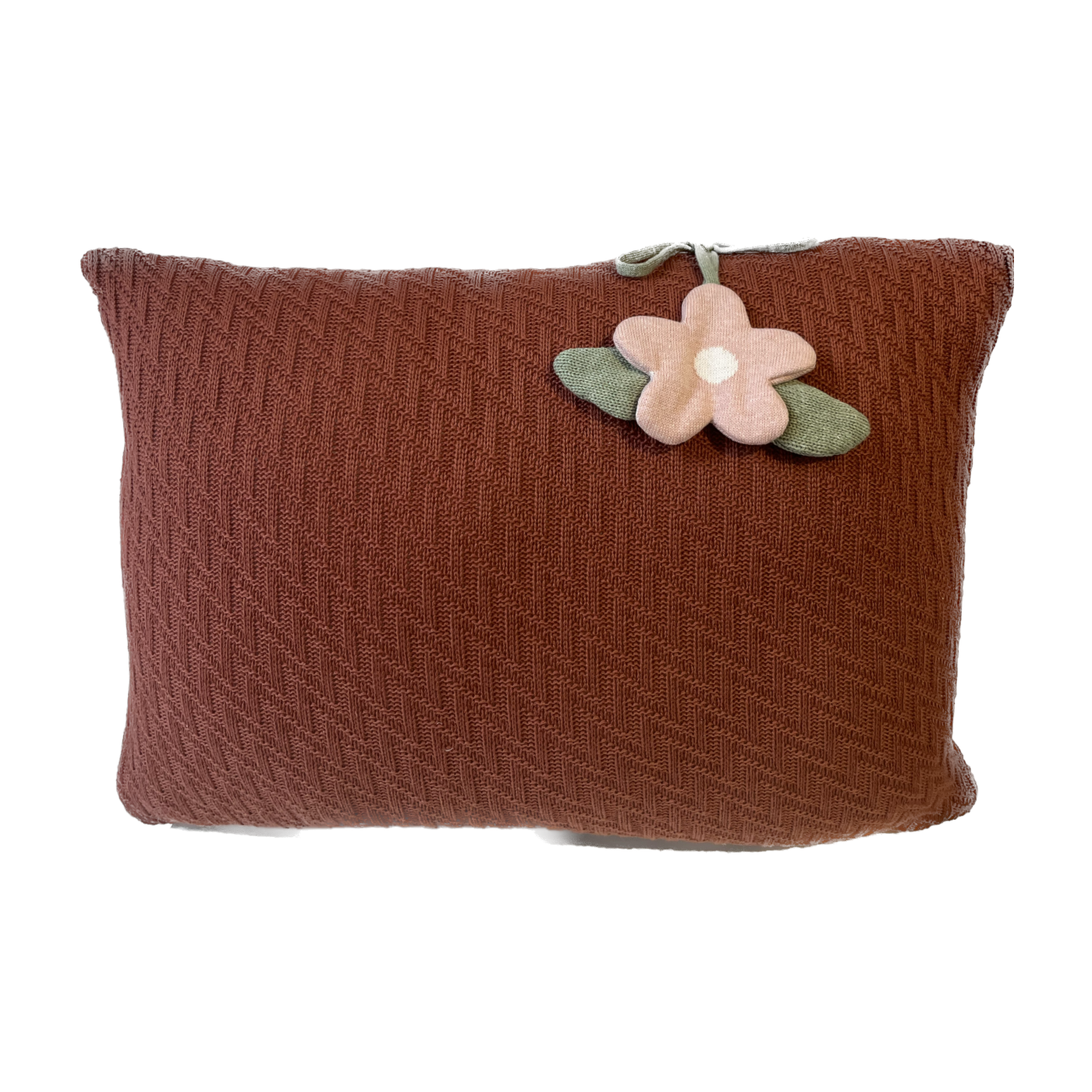 Almofada Decorativa em Tricot com Pingente de Flor – 100% Algodão - Feita à Mão