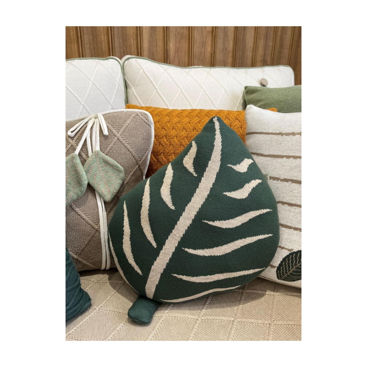 Almofada Decorativa em Tricot Formato de Folha – 45x40 cm