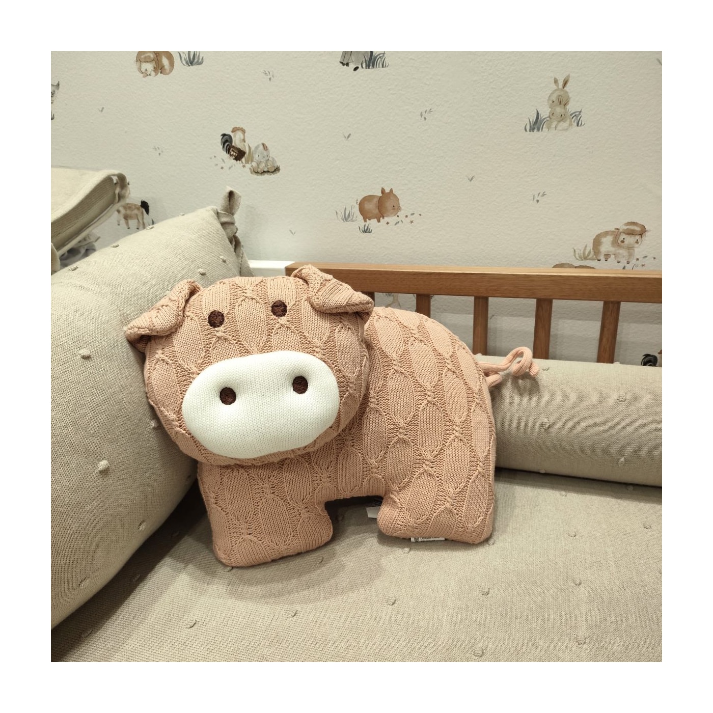 Com seu design lúdico de porquinho fofo, ela traz charme e alegria para a cama, poltrona de amamentação ou cantinho de brincar, harmonizando perfeitamente com quartinhos de bebê ou infantil inspirados no universo da fazendinha.