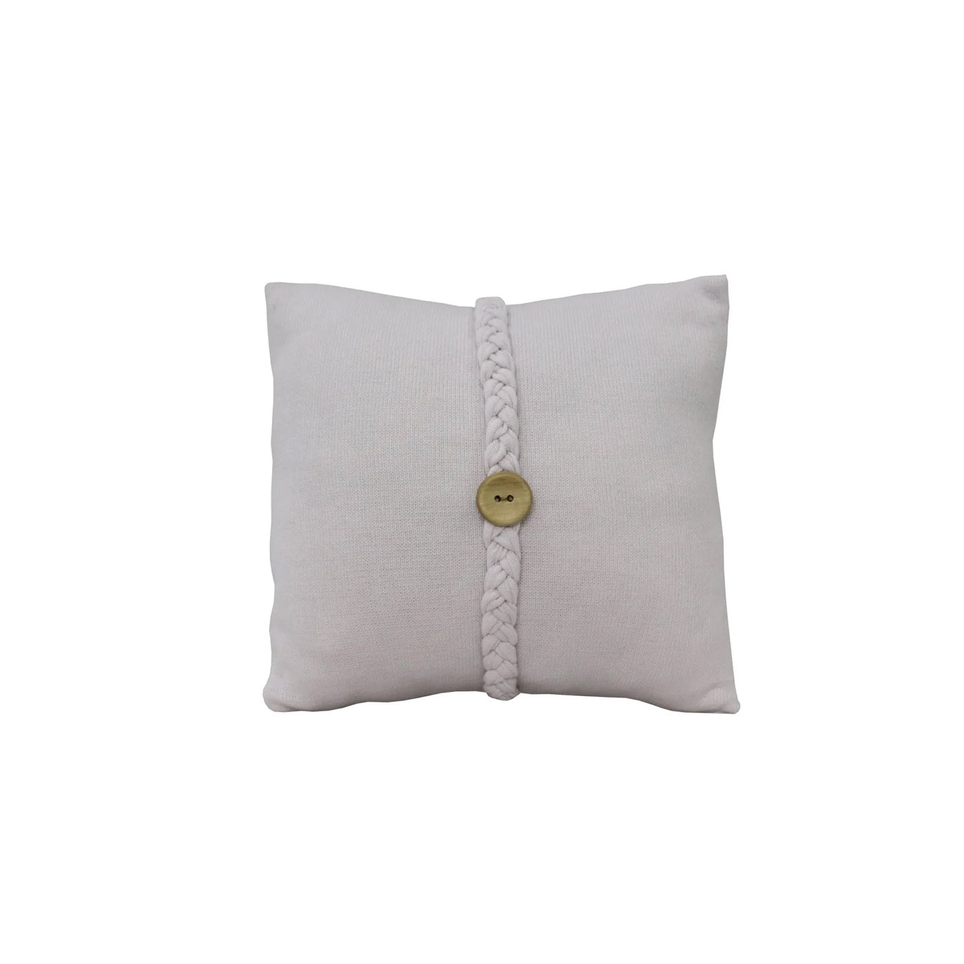 Almofada Decorativa Tricot Trançada com Botão Off White