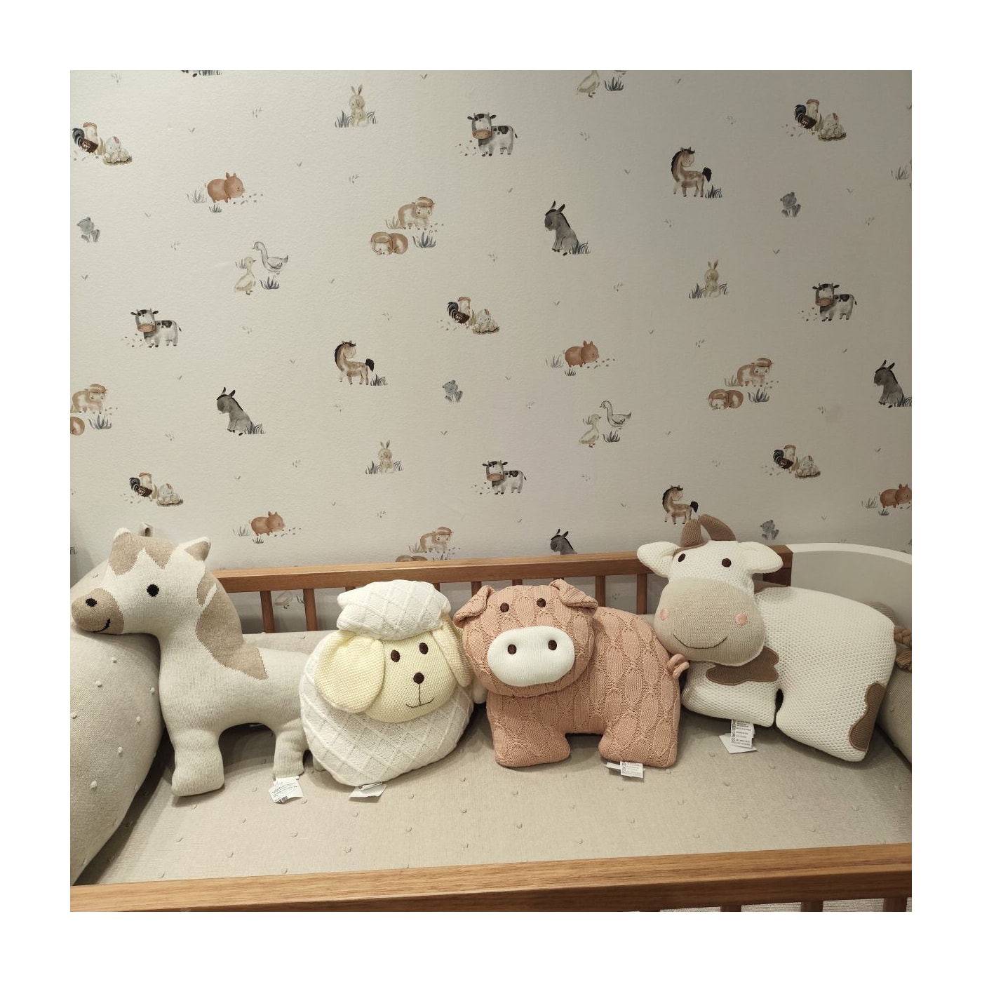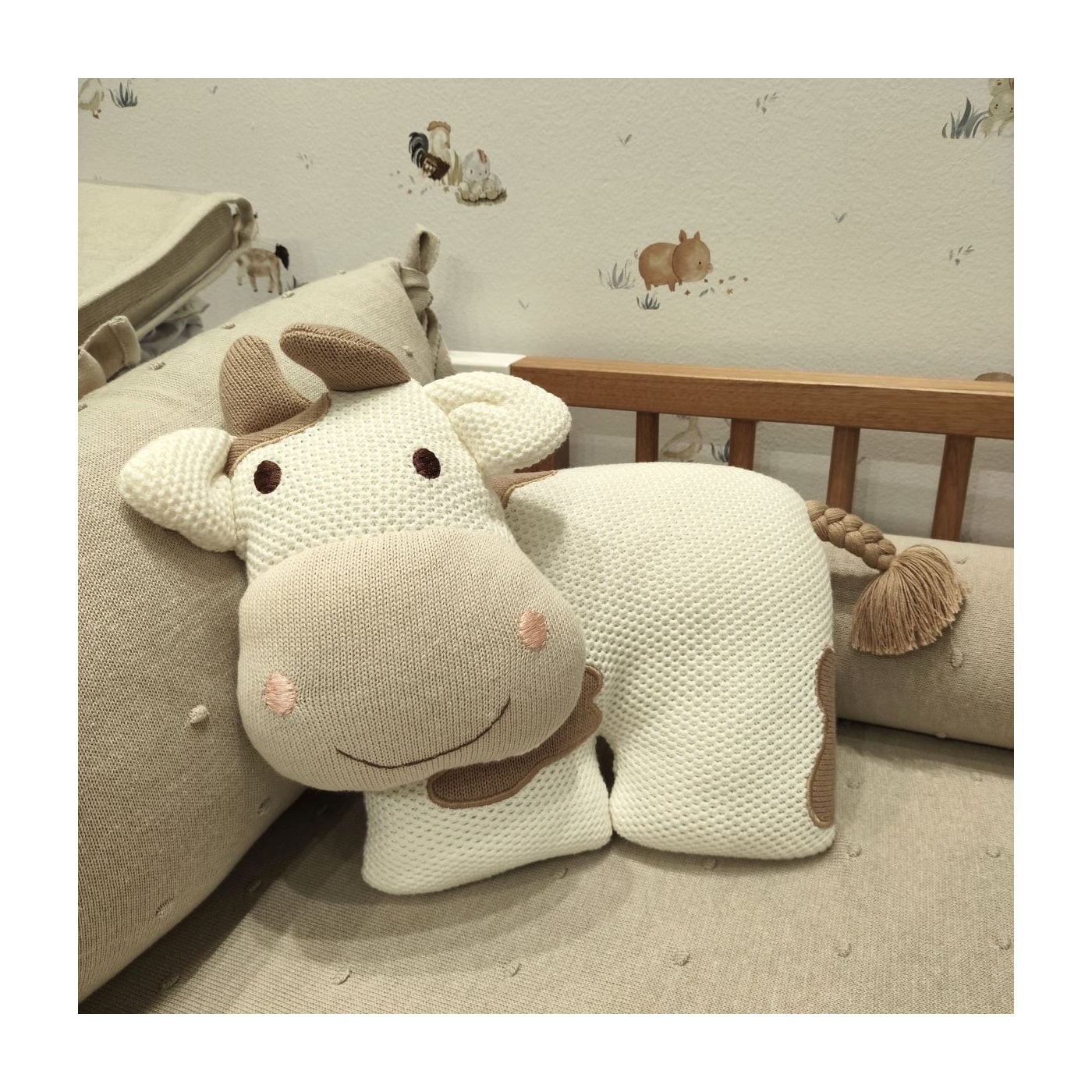 Com seu design lúdico de vaquinha, ela é perfeita para decorar a cama, a poltrona de amamentação ou o cantinho de brincar, harmonizando com quartos de bebê e infantil inspirados no universo da fazendinha.