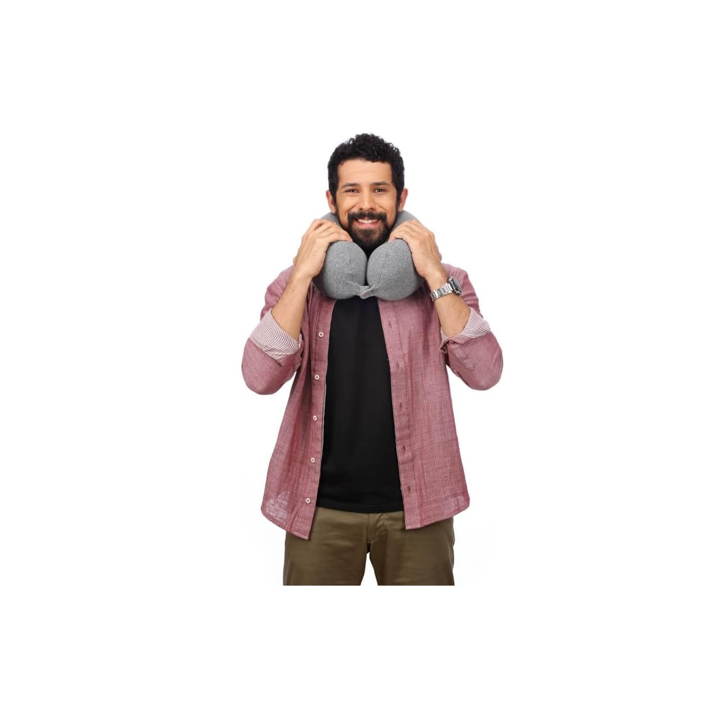 Uso Versátil: Pode ser usada em volta do pescoço ou aberta como travesseiro.