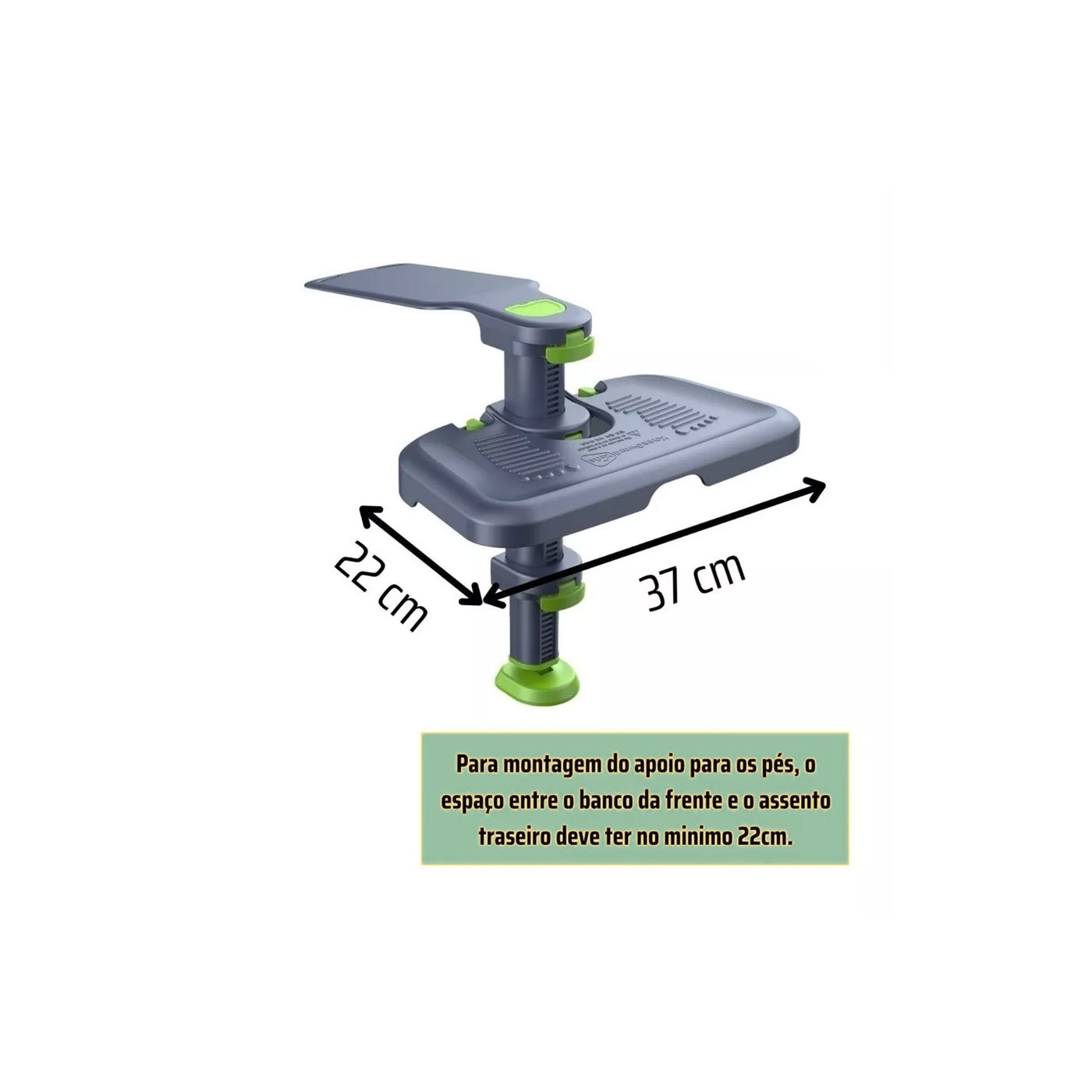 Para montagem do apoio para os pés, o espaço entre o banco da frente e o assento traseiro deve ter no mínimo 22cm.
