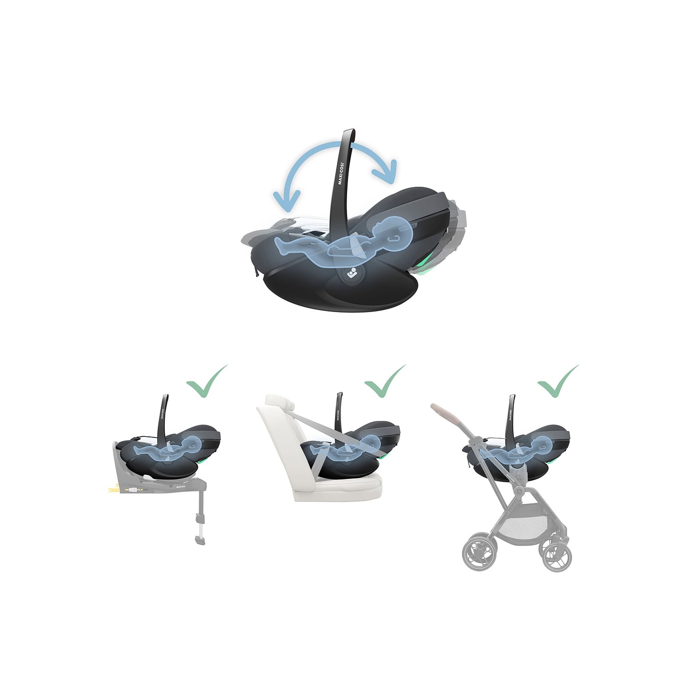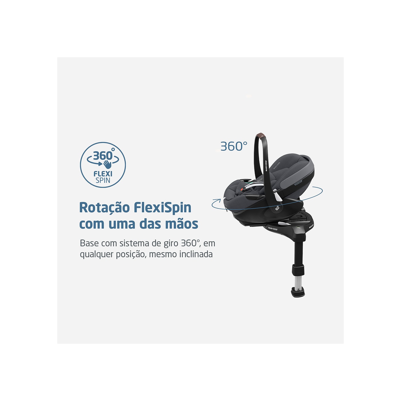 Como parte da Família 360 Pro, o Pebble 360 Pro² possui rotação de 360° e SlideTech®. Quando usado com a base deslizante rotativa FamilyFix 360 Pro,