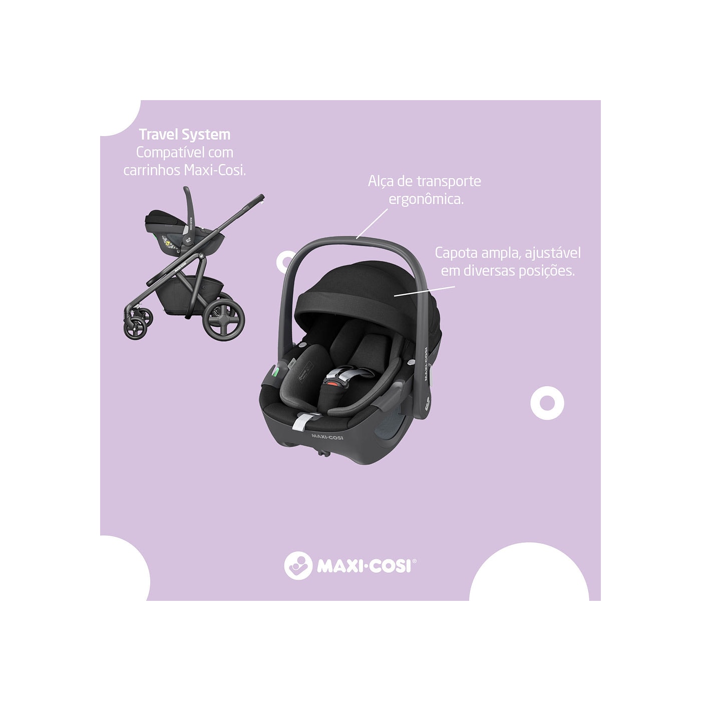 Por fim, a capota deste bebê conforto é ampla e ajustável em diversas posições, e você ainda tem um item que possui tecnologia Travel System. Ou seja, além de se adaptar ao seu carro sem problemas, ele também oferece compatibilidade com os carrinhos Maxi-Cosi e de outras marcas.