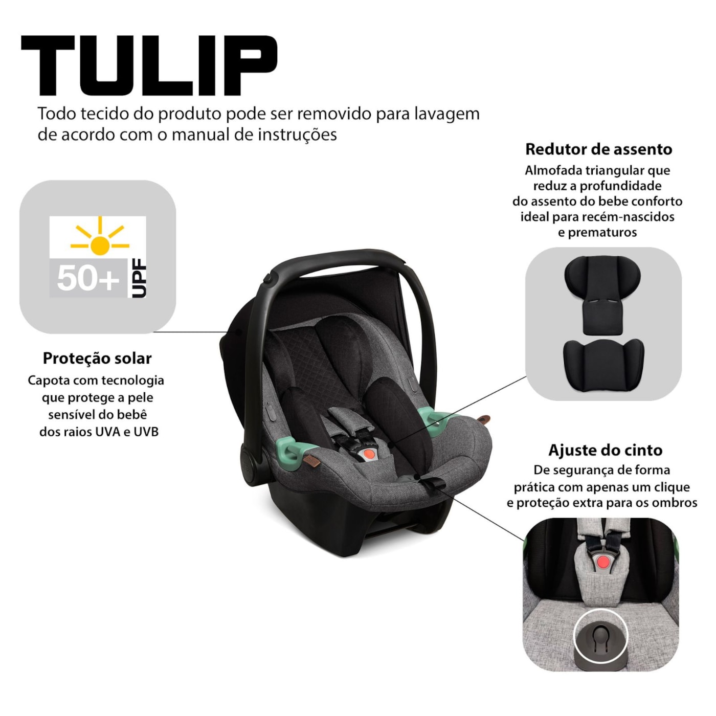 O Bebê Conforto Tulip da ABC Design combina segurança, conforto e praticidade em um design moderno e leve, ideal para acompanhar o seu bebê em todas as etapas dos primeiros meses de vida.