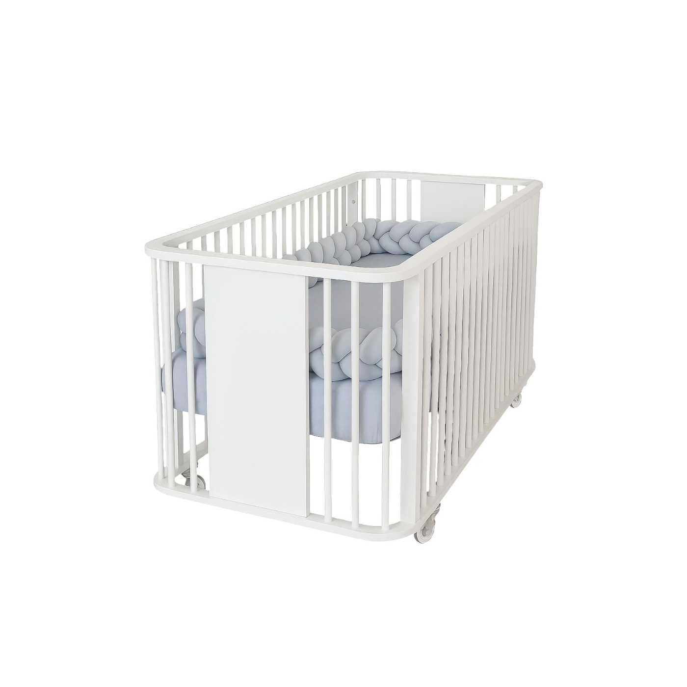 Transformação em Mini Cama: Pensando no crescimento e na transição do seu bebê para uma nova fase, o Berço Kin pode ser facilmente convertido em uma mini cama, acompanhando o desenvolvimento da criança e oferecendo conforto contínuo ao longo dos anos.