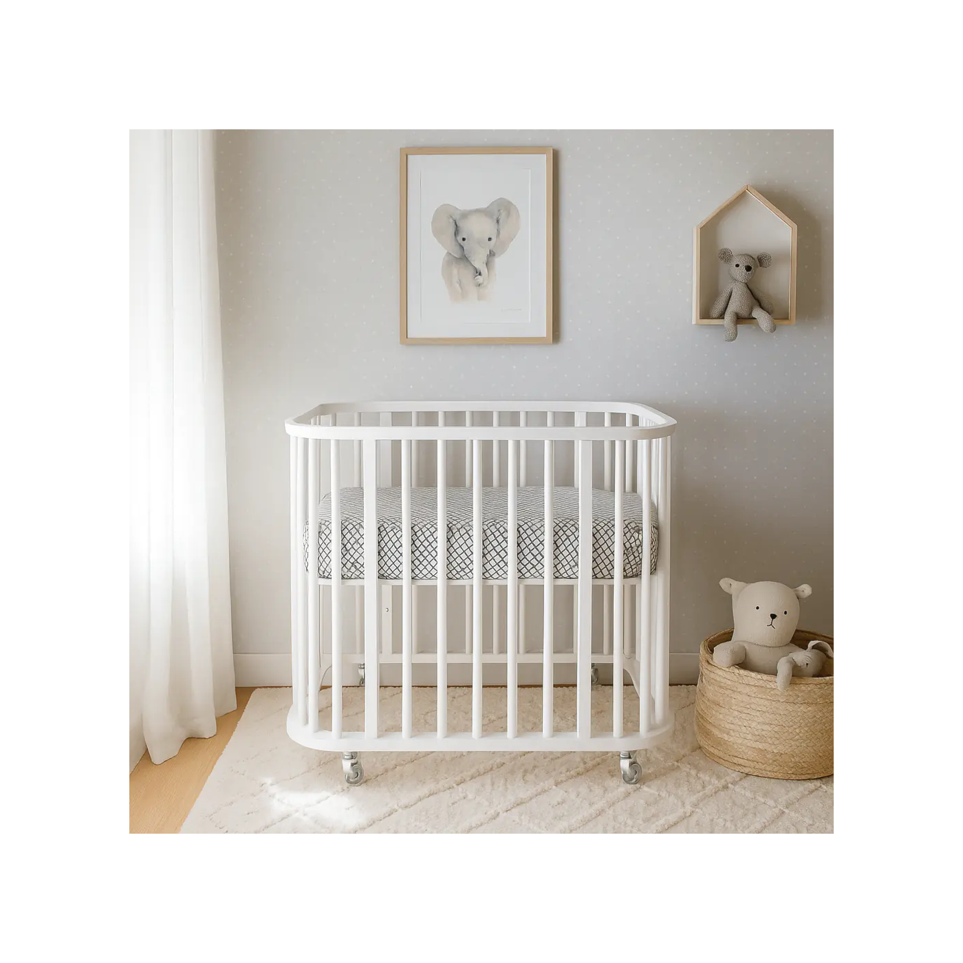 1ª fase – Mini Berço: Ideal para recém-nascidos, compacto e aconchegante.