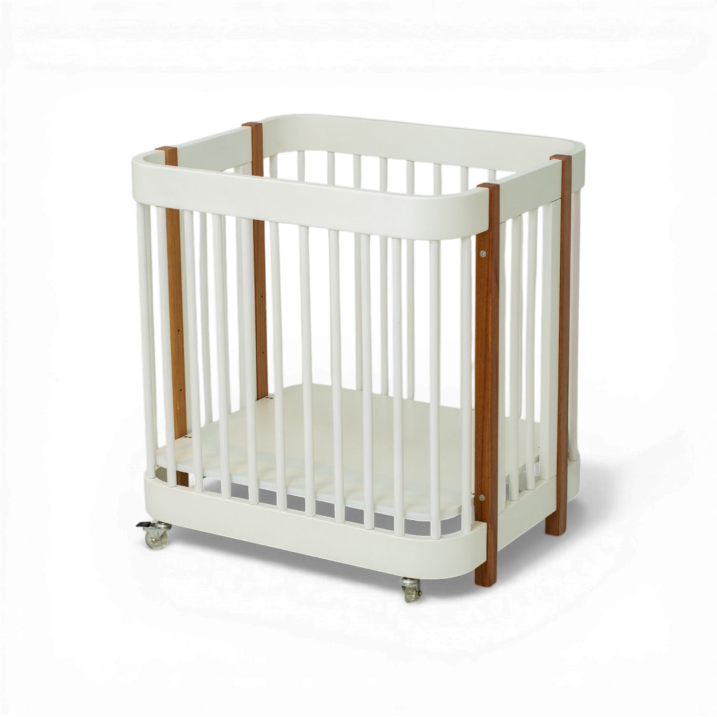 Ideal para os primeiros meses, com dimensões compactas e colchão incluso.