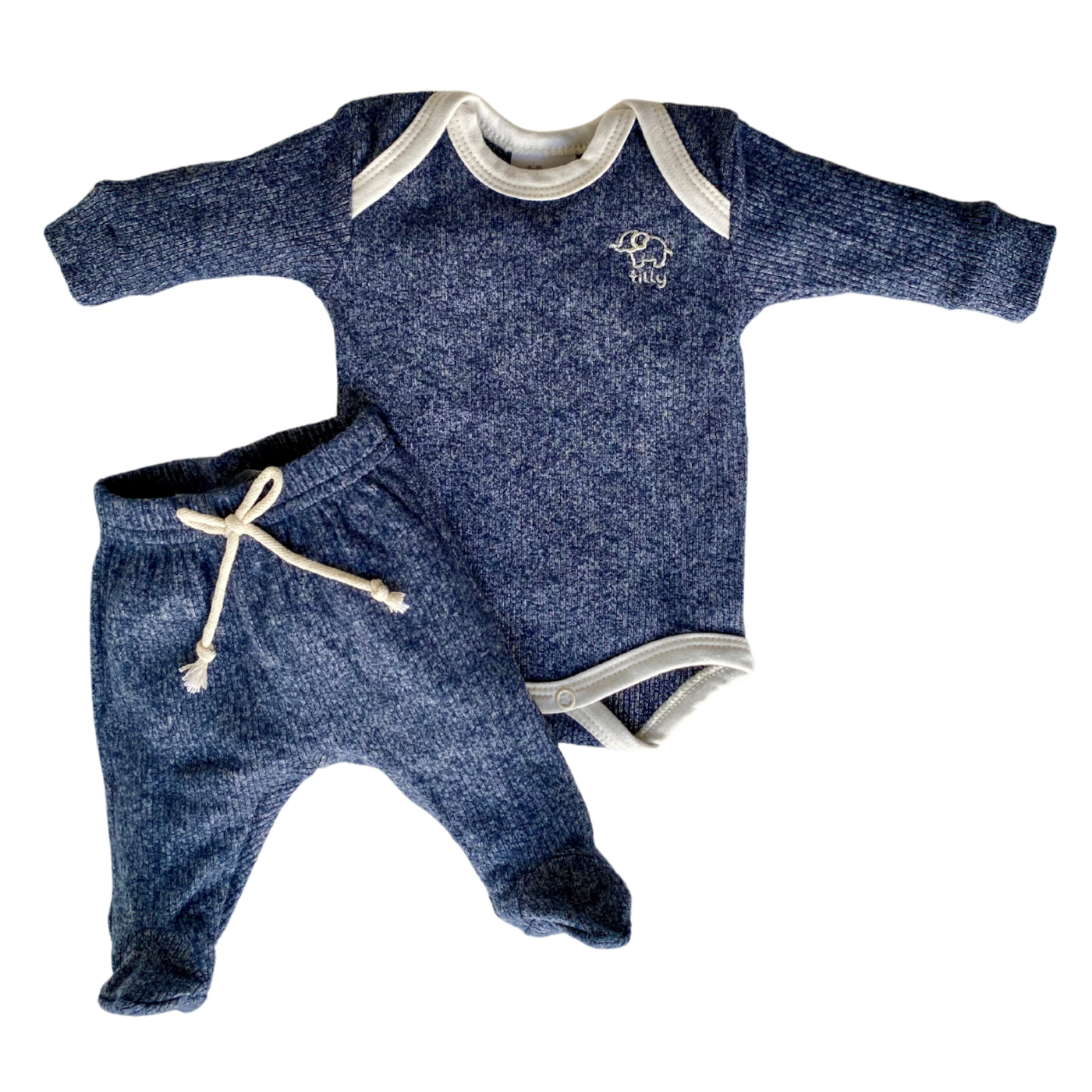 Body Manda Longa c/ Culote Prematuro Canelado Suedine Azul Jeans - Tilly Baby