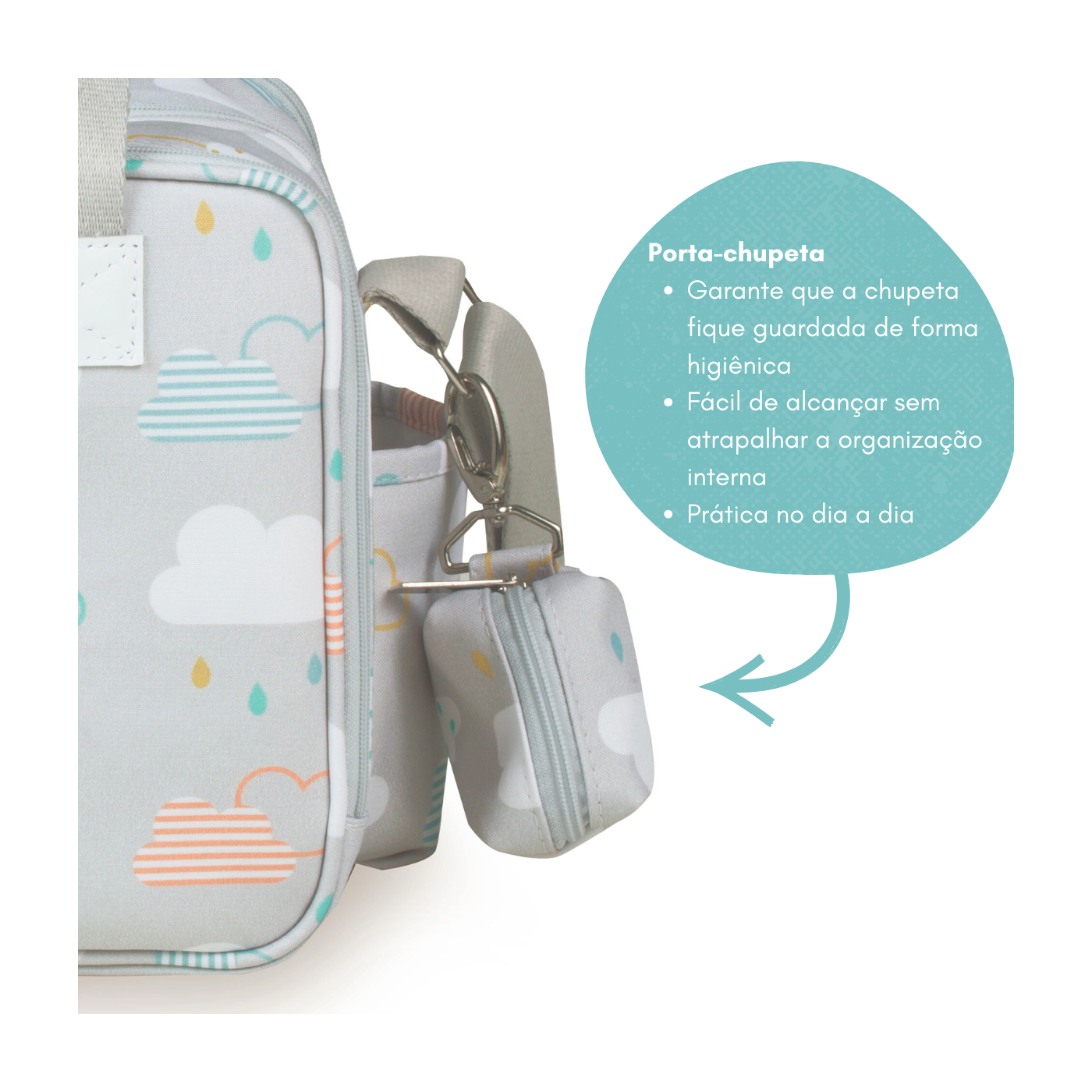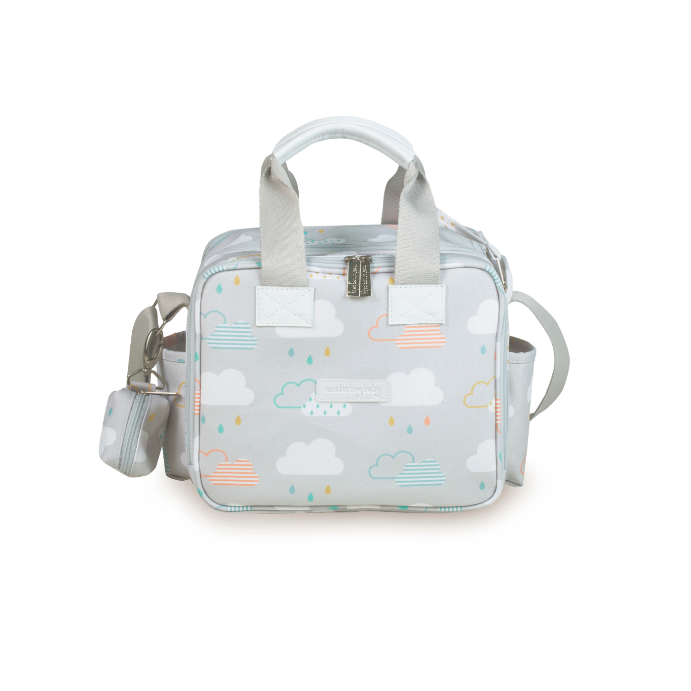 A Bolsa Sacola de Maternidade Térmica Masterbag une praticidade, delicadeza e funcionalidade para acompanhar a rotina de passeios e cuidados com o bebê. Com uma estampa suave de nuvens e gotinhas, em tons neutros e modernos, ela é perfeita para quem busca um visual encantador sem abrir mão da organização.