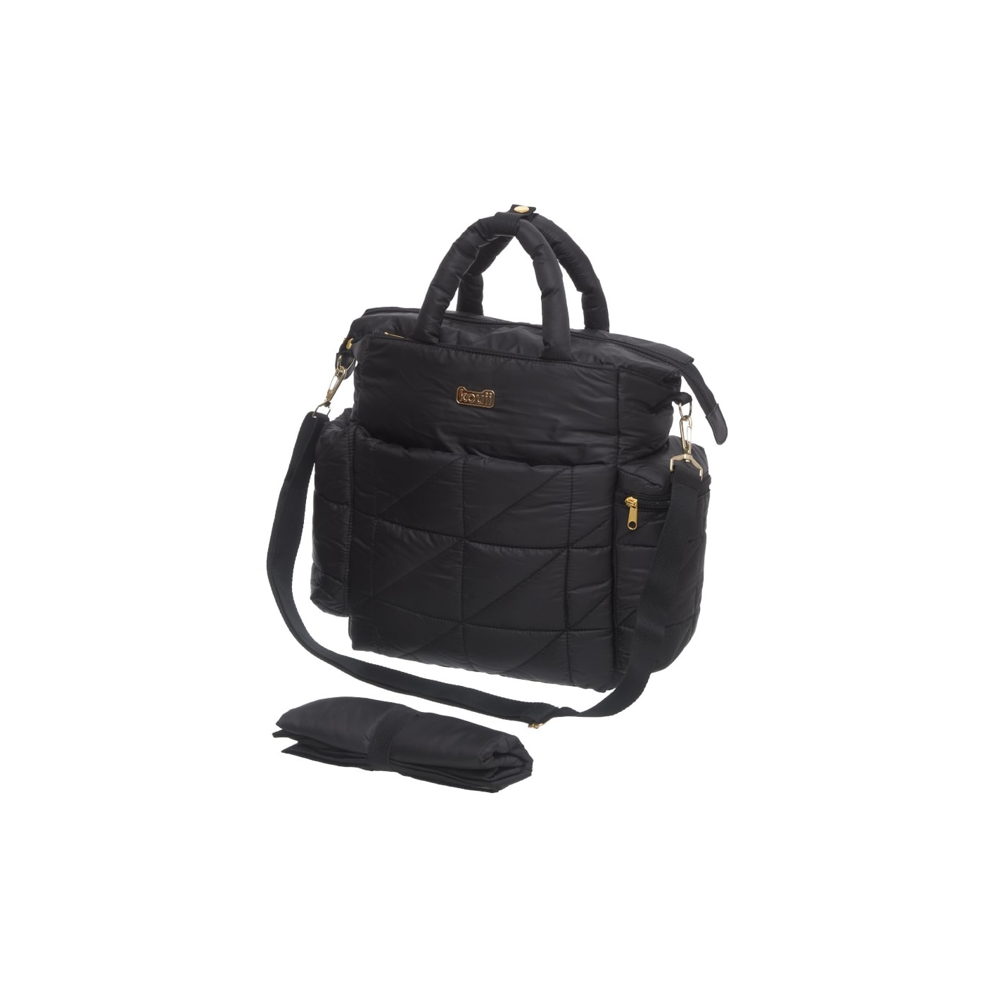 Bolsa Maternidade Transversal Preta em Nylon Matelassê com Trocador - Aconchego - Kouii