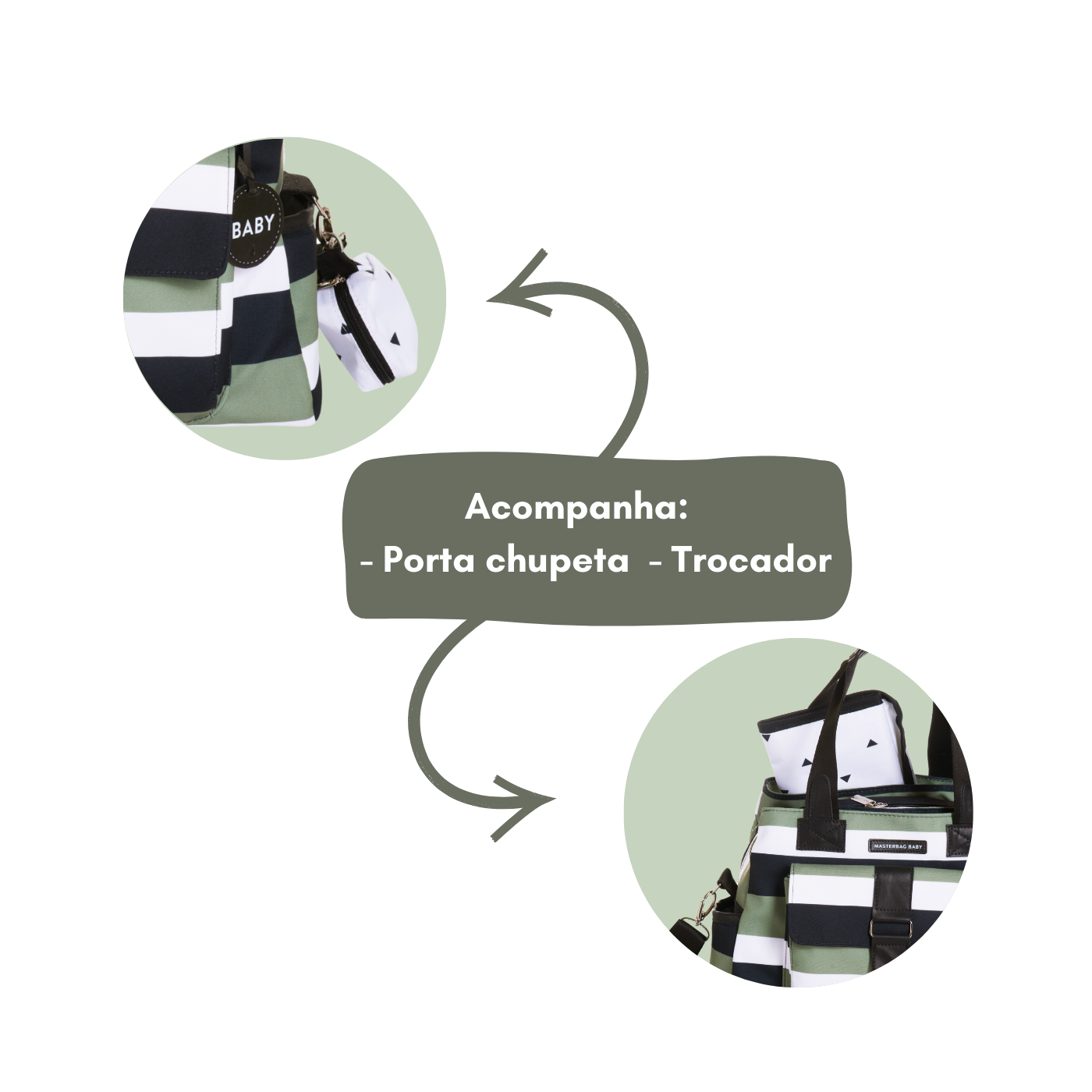 Acompanha trocador portátil, proporcionando mais conforto e higiene nas trocas do bebê em qualquer lugar. Possui alças de mão reforçadas e alça transversal regulável, oferecendo versatilidade no transporte.