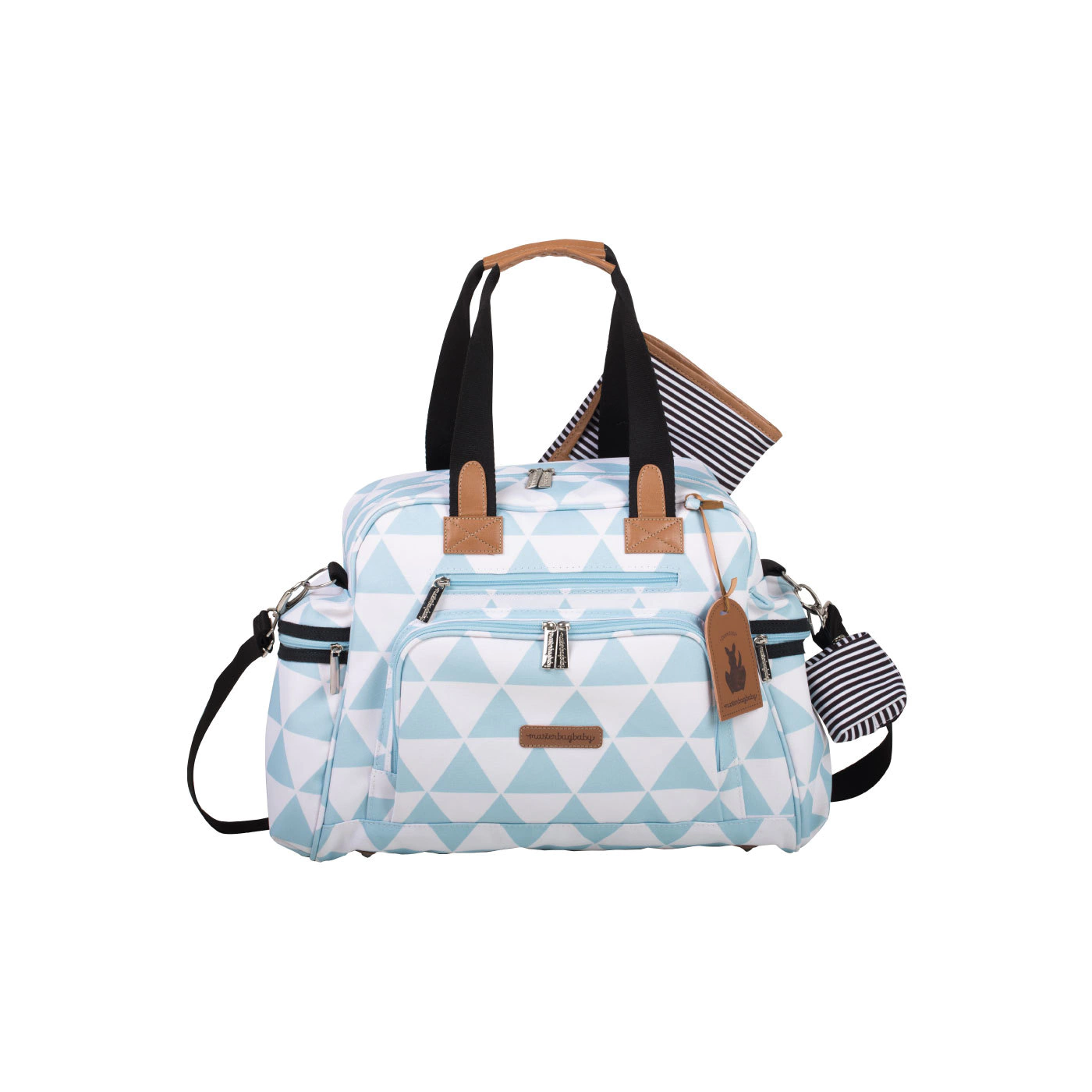 Acompanha trocador estampado, porta chupeta, tag canguru e alça tiracolo removível.