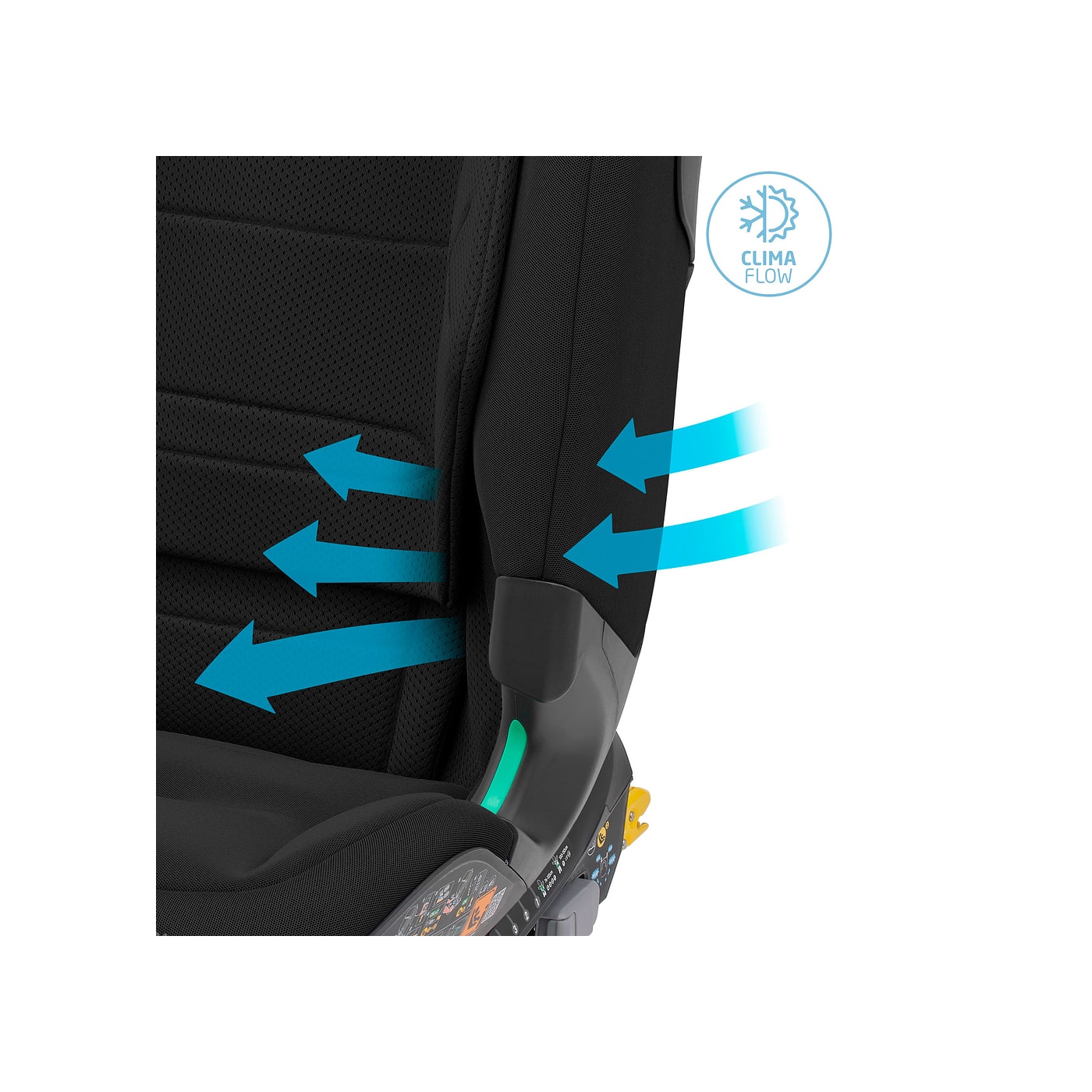 A cadeirinha da Maxi-Cosi também conta com painéis ClimaFlow e tecidos respiráveis, que oferecem maior circulação de ar em todas as estações. Assim, seu pequeno estará sempre relaxado e feliz durante o transporte.