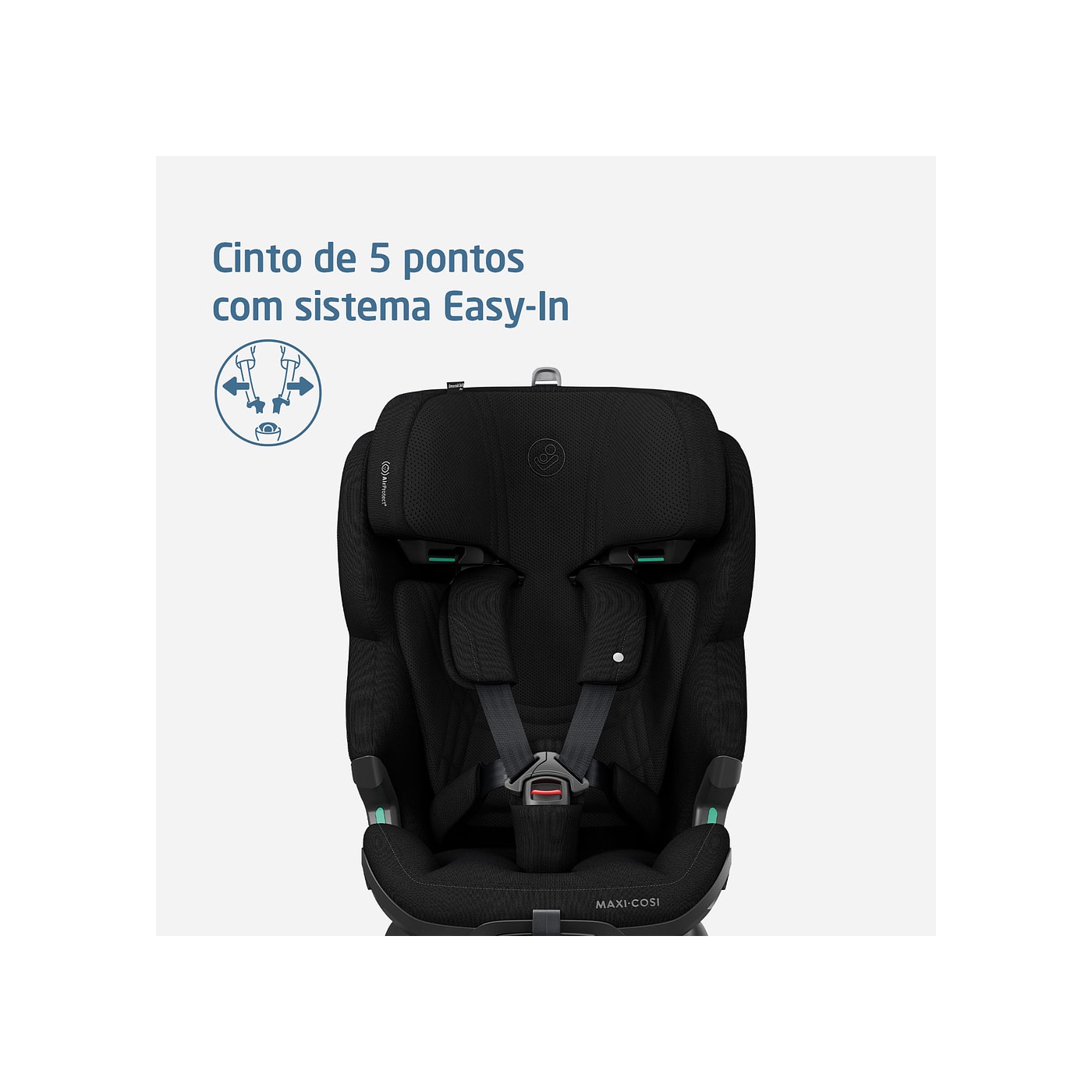 Cinto de segurança: Cinto de 5 pontos com sistema Easy-In, que facilita o processo de colocar e retirar a criança da cadeira.