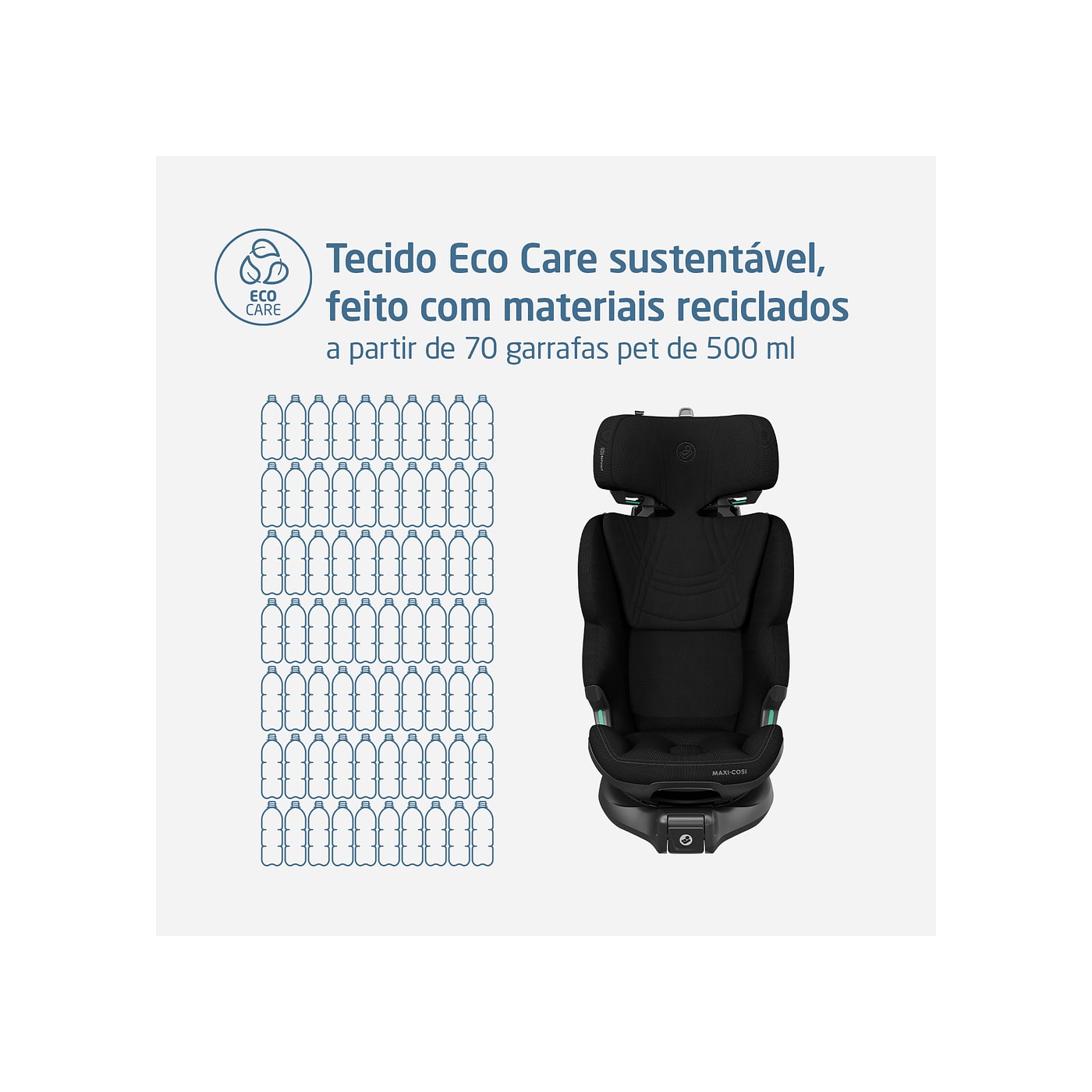 A instalação é fácil e segura graças ao sistema ISOFIX com perna de apoio integrada. Os tecidos 100% reciclados reforçam o compromisso com a sustentabilidade, enquanto a capa lavável à máquina mantém a cadeira sempre limpa e confortável.