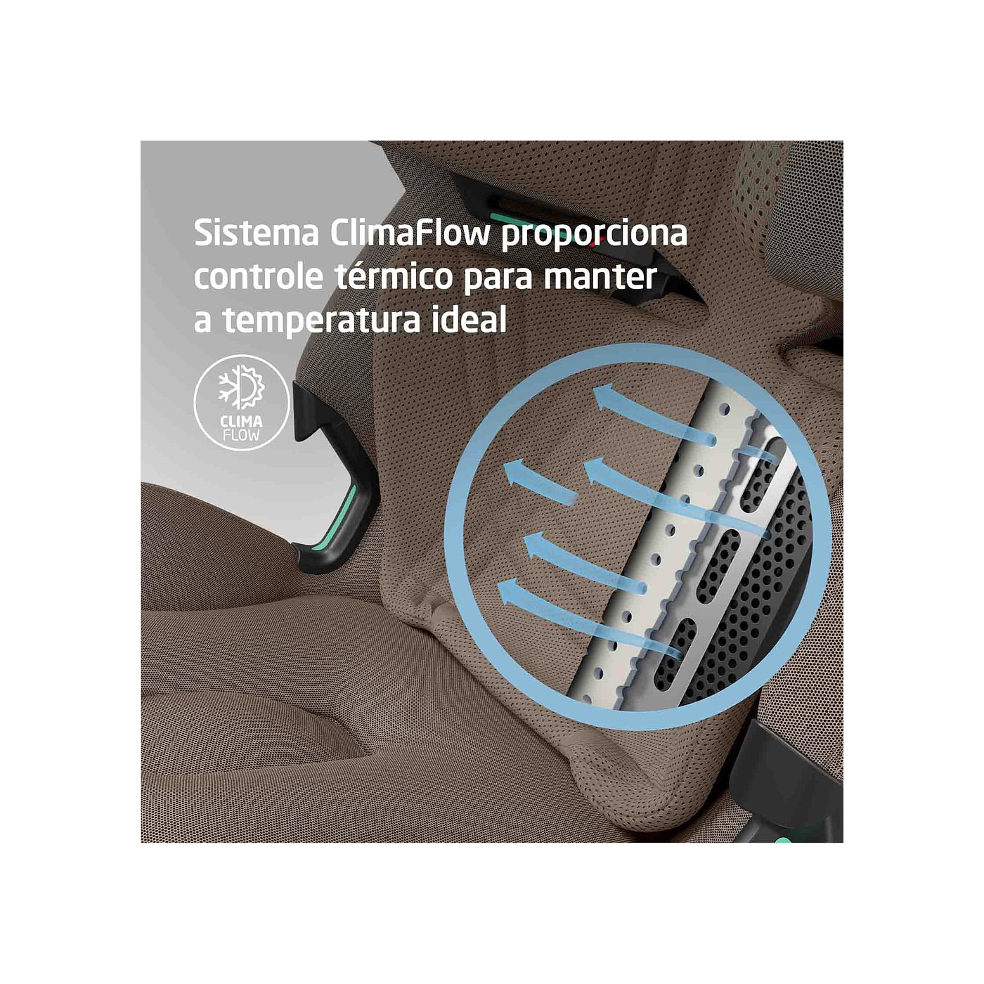 O sistema ClimaFlow garante controle térmico, mantendo a temperatura sempre agradável para a criança. A proteção lateral G-CELL oferece segurança contra impactos, enquanto o sistema AirProtect® protege a cabeça. Além disso, a cadeira conta com cinto de 5 pontos Easy-In e recline em 5 posições, garantindo mais segurança e tranquilidade em todos os passeios.