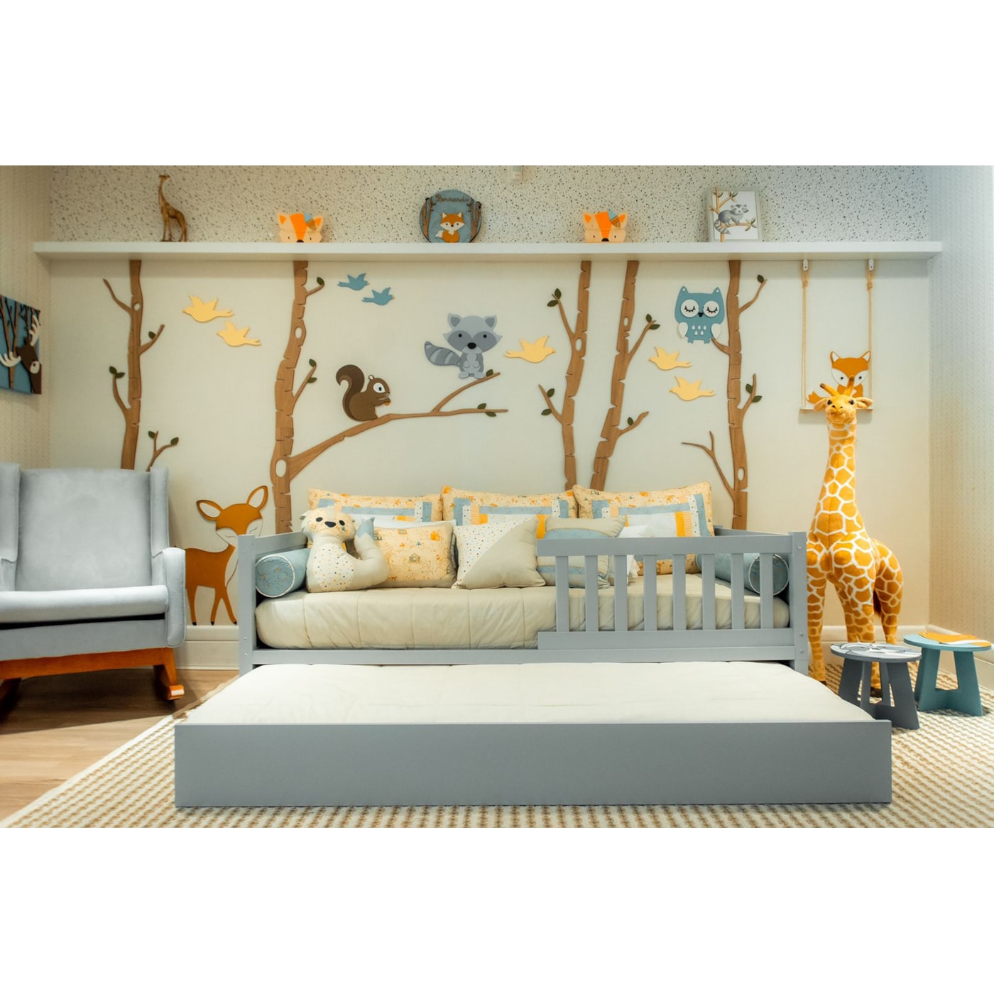 O estilo fazenda conta com uma grade de proteção para um sono mais tranquilo, com 90cm de comprimento e 39cm de altura.