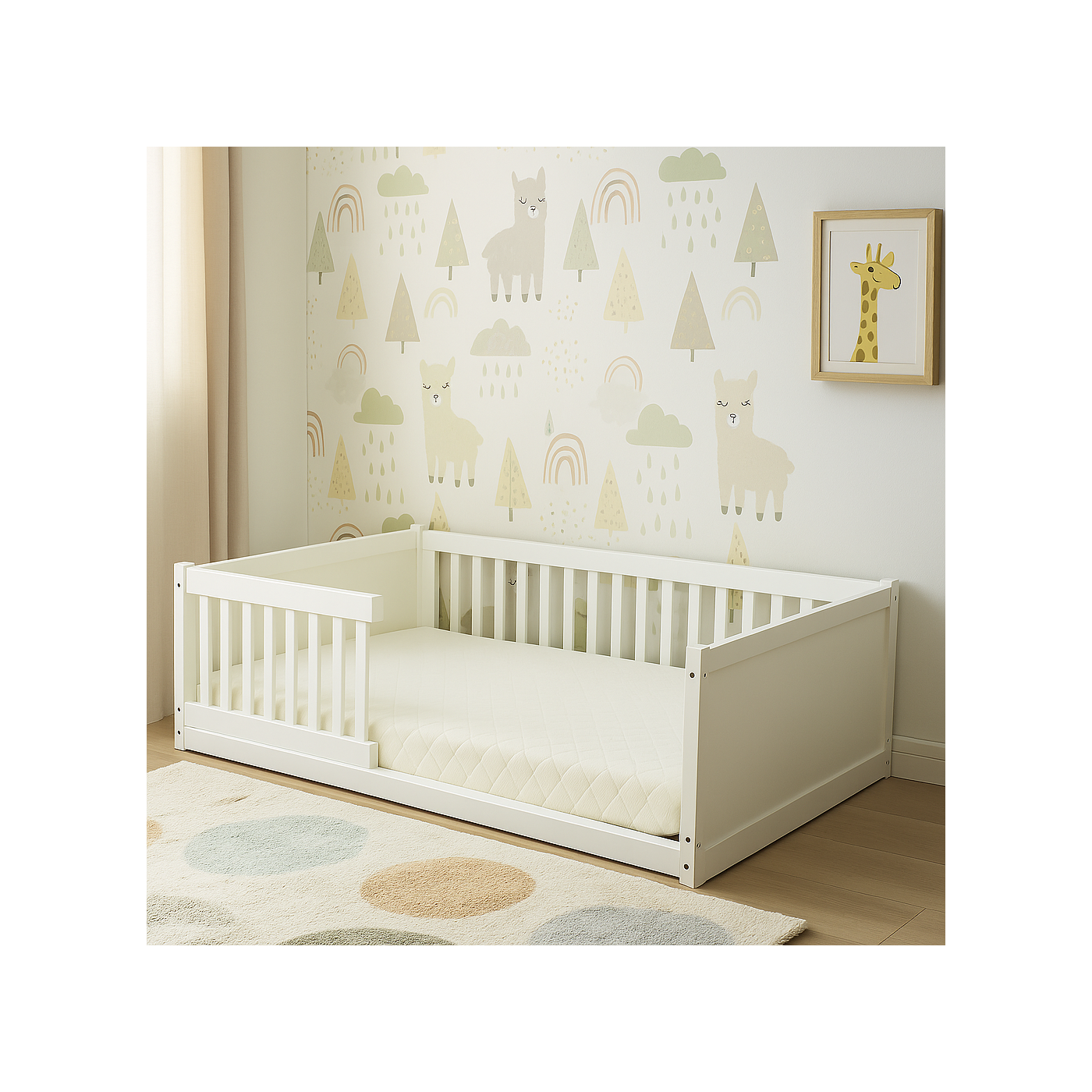 Inspirada no estilo montessoriano, ela foi desenvolvida para estimular a independência da criança, permitindo que entre e saia da cama com facilidade.