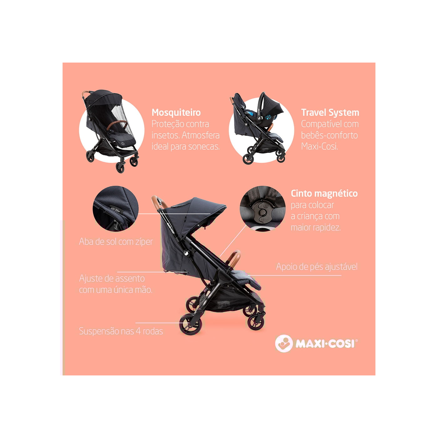 Acompanha adaptadores para travel system com bebês conforto Maxi-Cosi (vendidos separadamente)