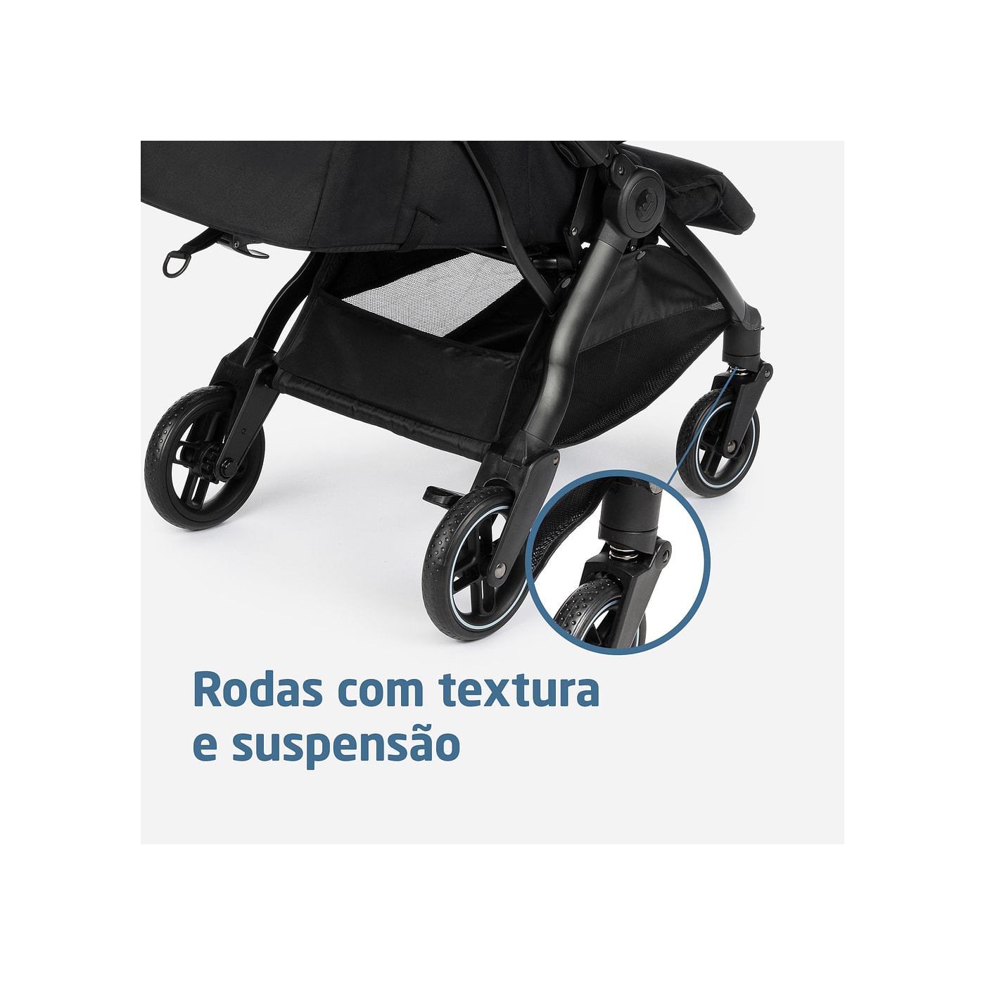 Viaje com tranquilidade: o bebê conforto pode ser instalado em poltronas de avião, enquanto o carrinho Eva³ cabe como bagagem de mão. Uma solução moderna, funcional e segura para facilitar a vida dos pais e oferecer conforto ao bebê em qualquer lugar.