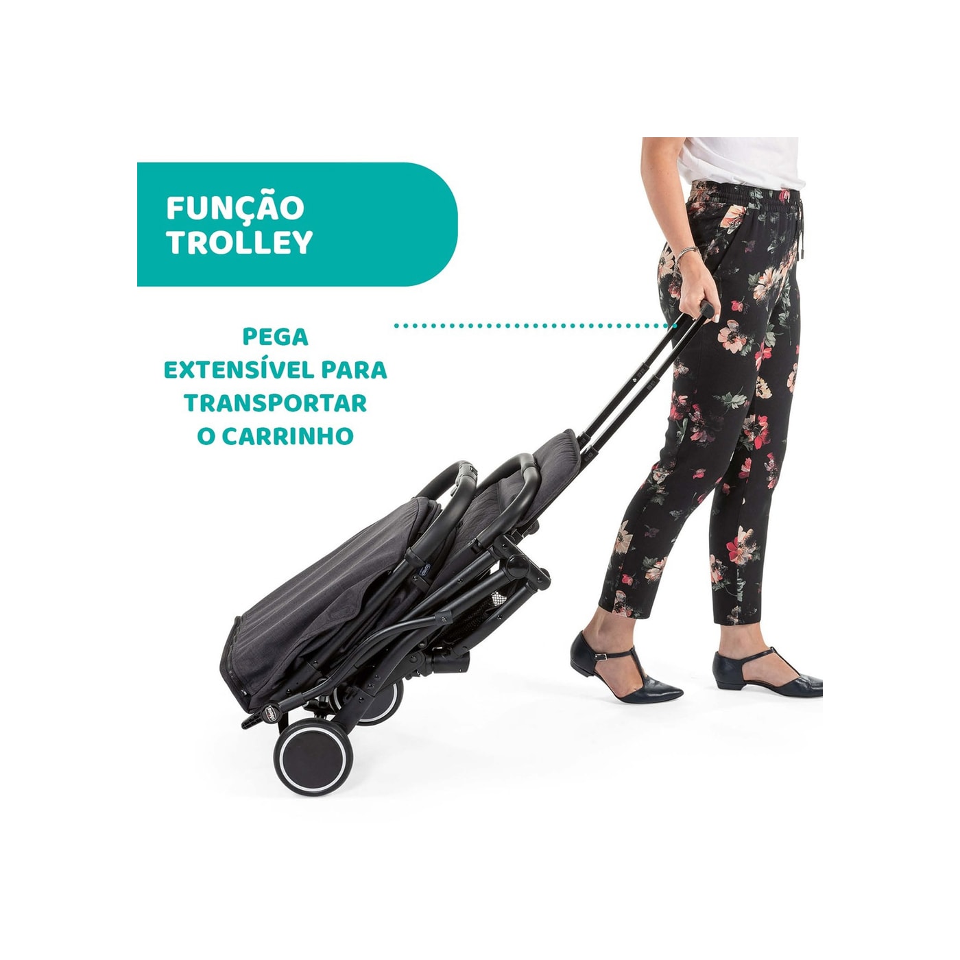 Quando fechado, o carrinho de passeio pode ser facilmente convertido num trolley, dando-lhe mais liberdade de acção.