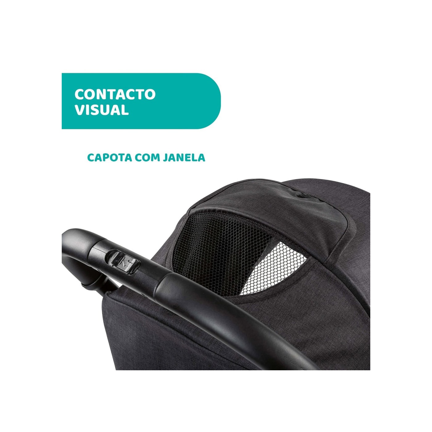 O Trolley Me está equipado com uma malha de janela na parte superior da capota, para aumentar a visibilidade do bebé.