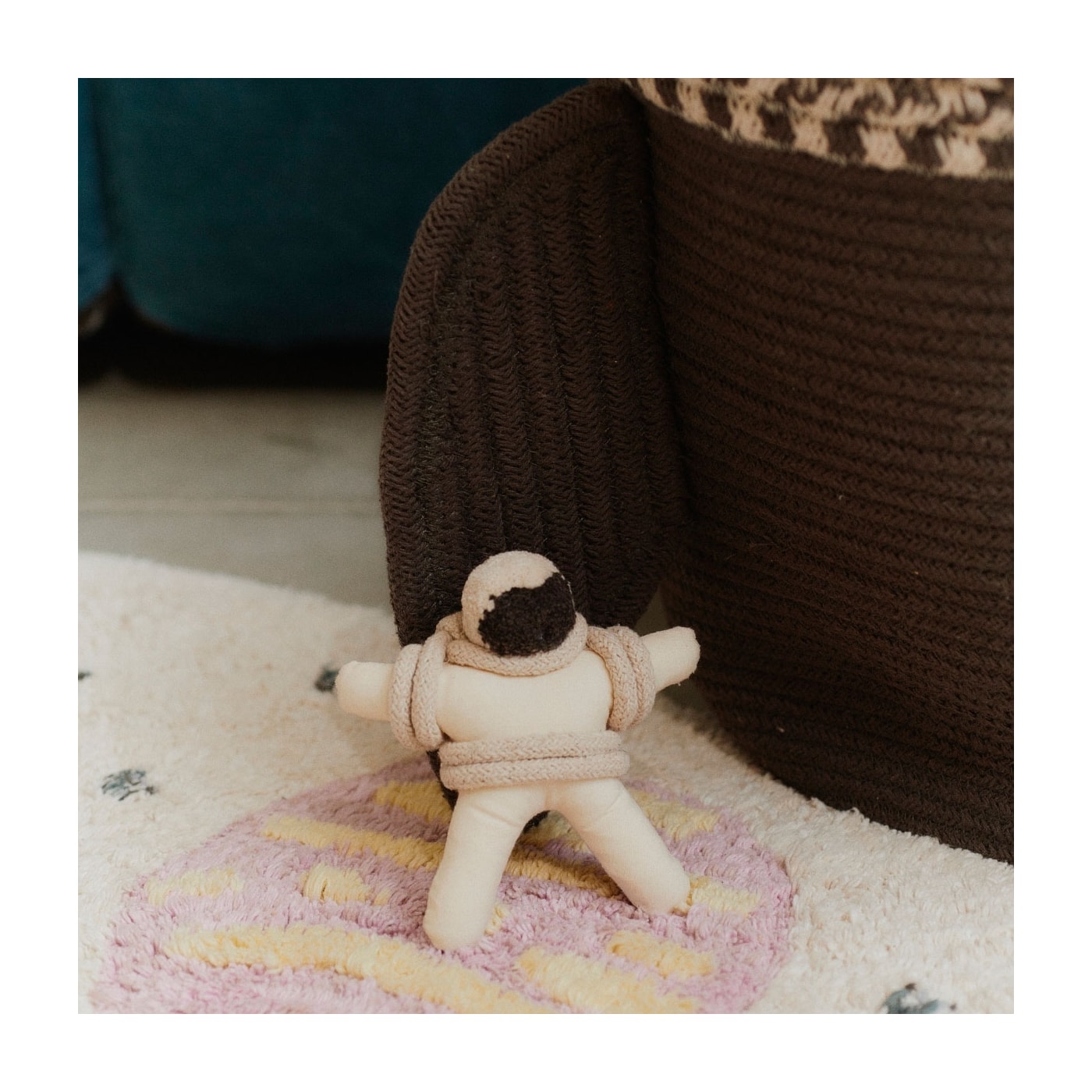 A cesta vem com um pequeno astronauta têxtil que se tornará o companheiro de viagem cósmica dos mais pequenos. O astronauta tem uma mochila de lona onde as crianças podem colocar os dedos, permitindo-lhes brincar e fingir que o astronauta está voando.