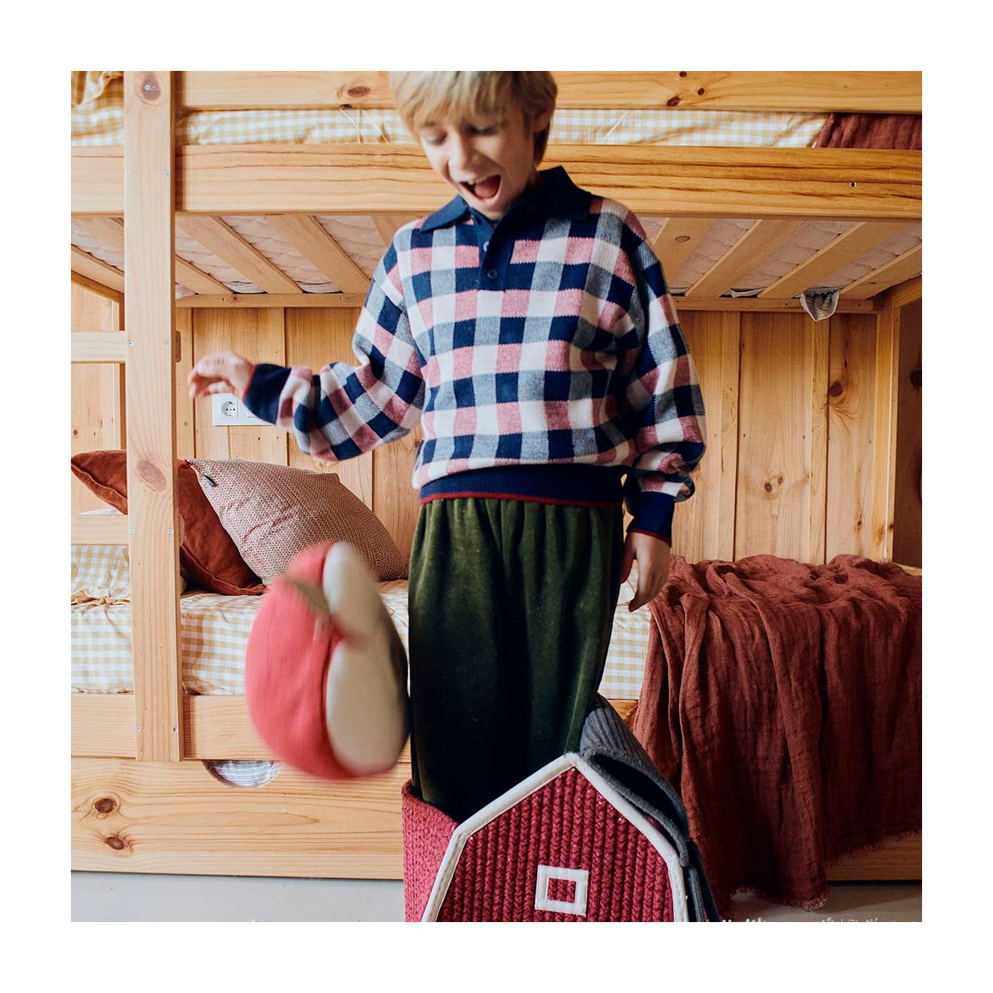 Interativo: Nossos produtos interativos incentivam a criatividade e a brincadeira das crianças enquanto aprendem e estimulam seus sentidos. Poderá encontrar no nosso catálogo tapetes, pufes, cestos, brinquedos e livros têxteis interativos!