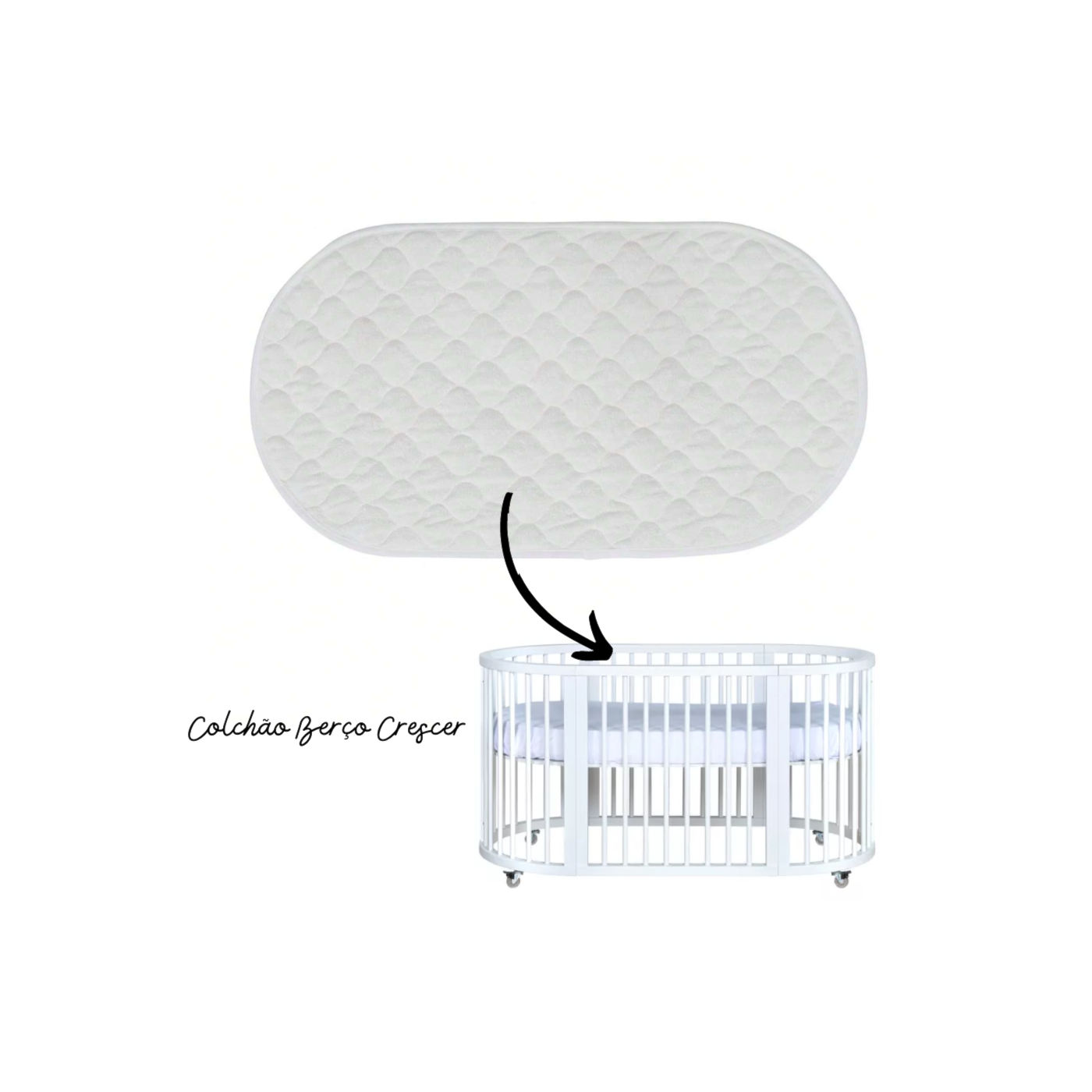 - Design oval exclusivo: Feito sob medida para o Berço Crescer, garantindo um encaixe perfeito e estabilidade durante o uso.