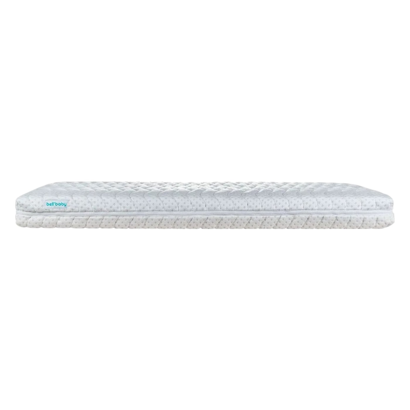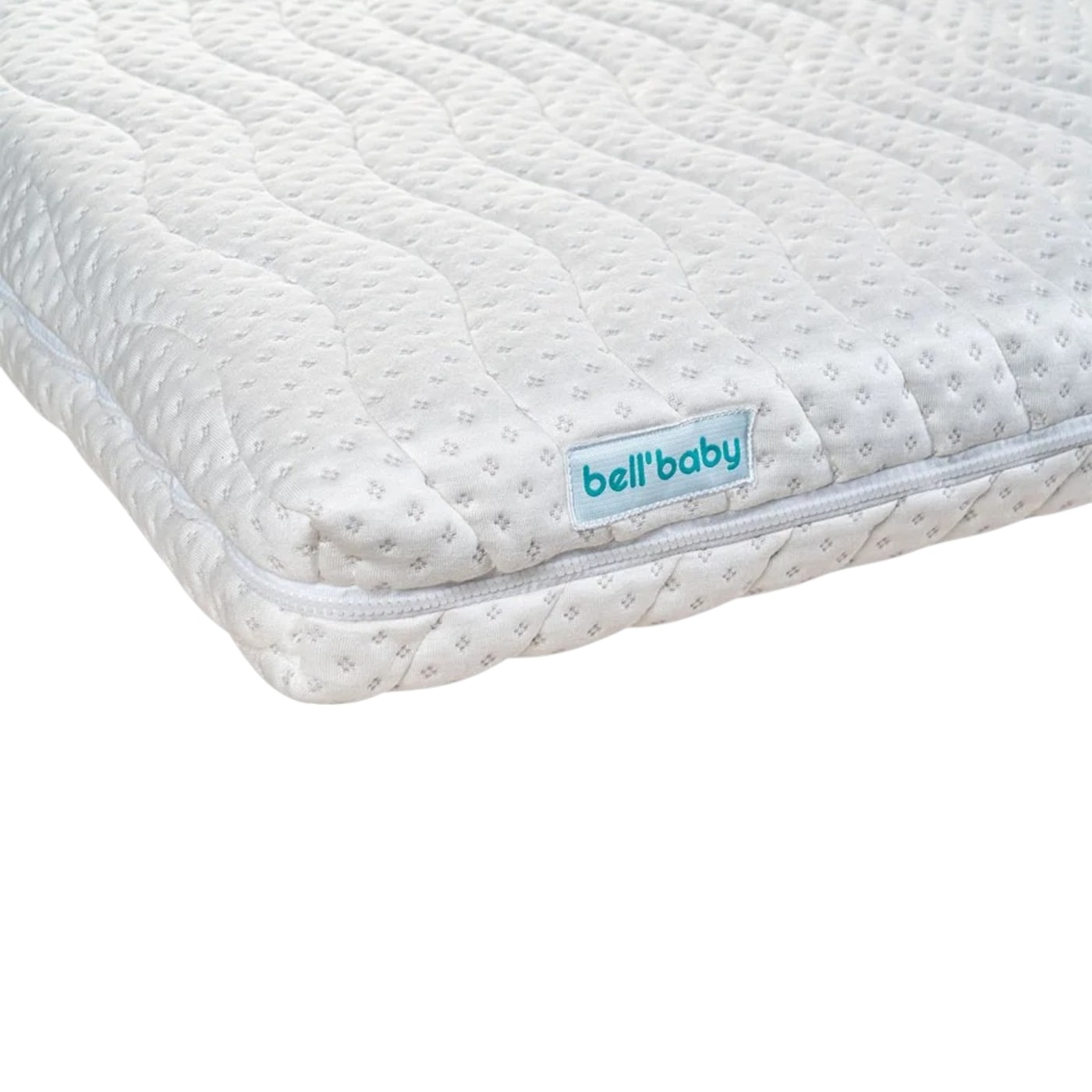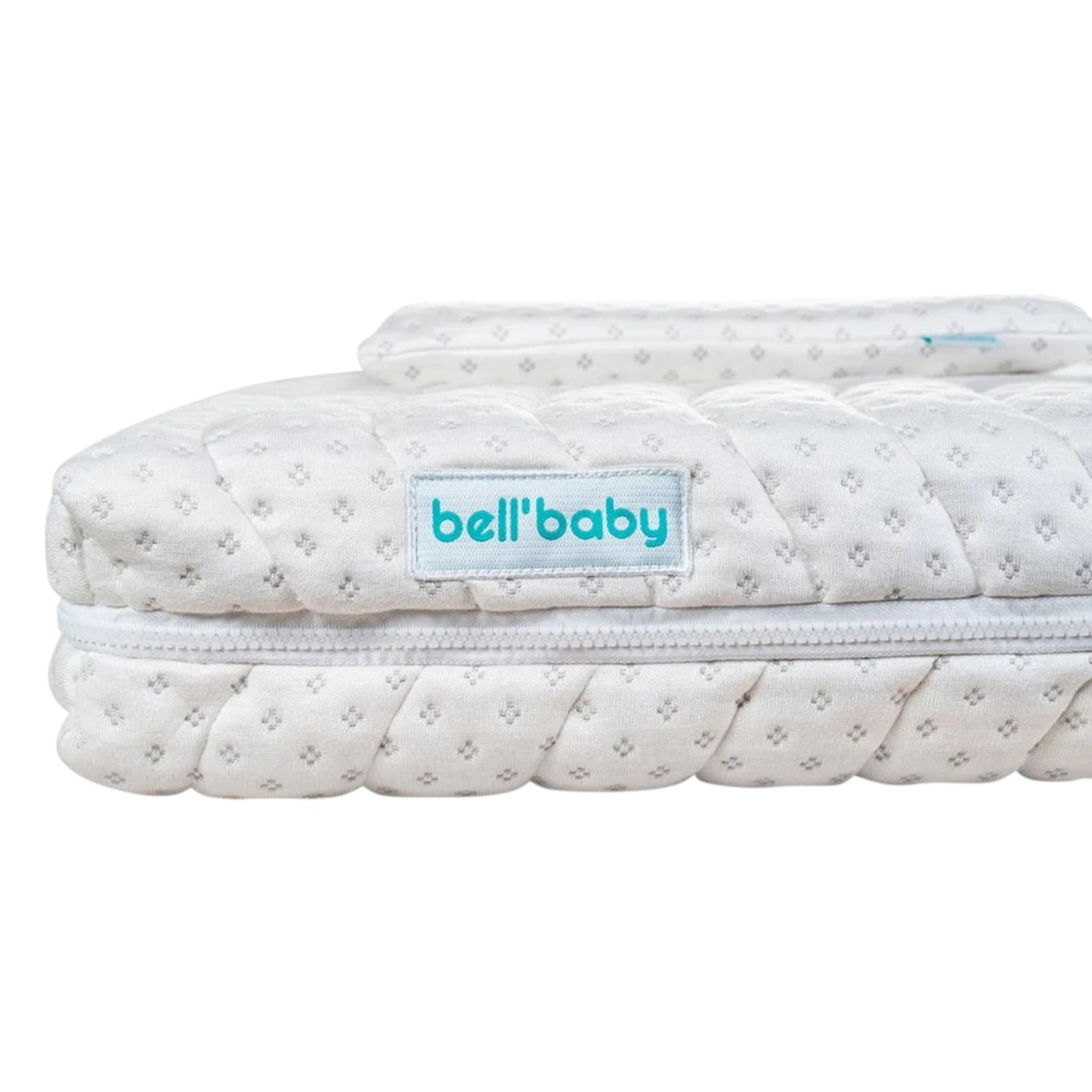 Percal 100% algodão: O interior do bell’baby é protegido com uma capa feita em percal 100% algodão. Assim, o bebê poderá continuar usufruindo do conforto único do seu colchão enquanto a capa estiver sendo lavada.