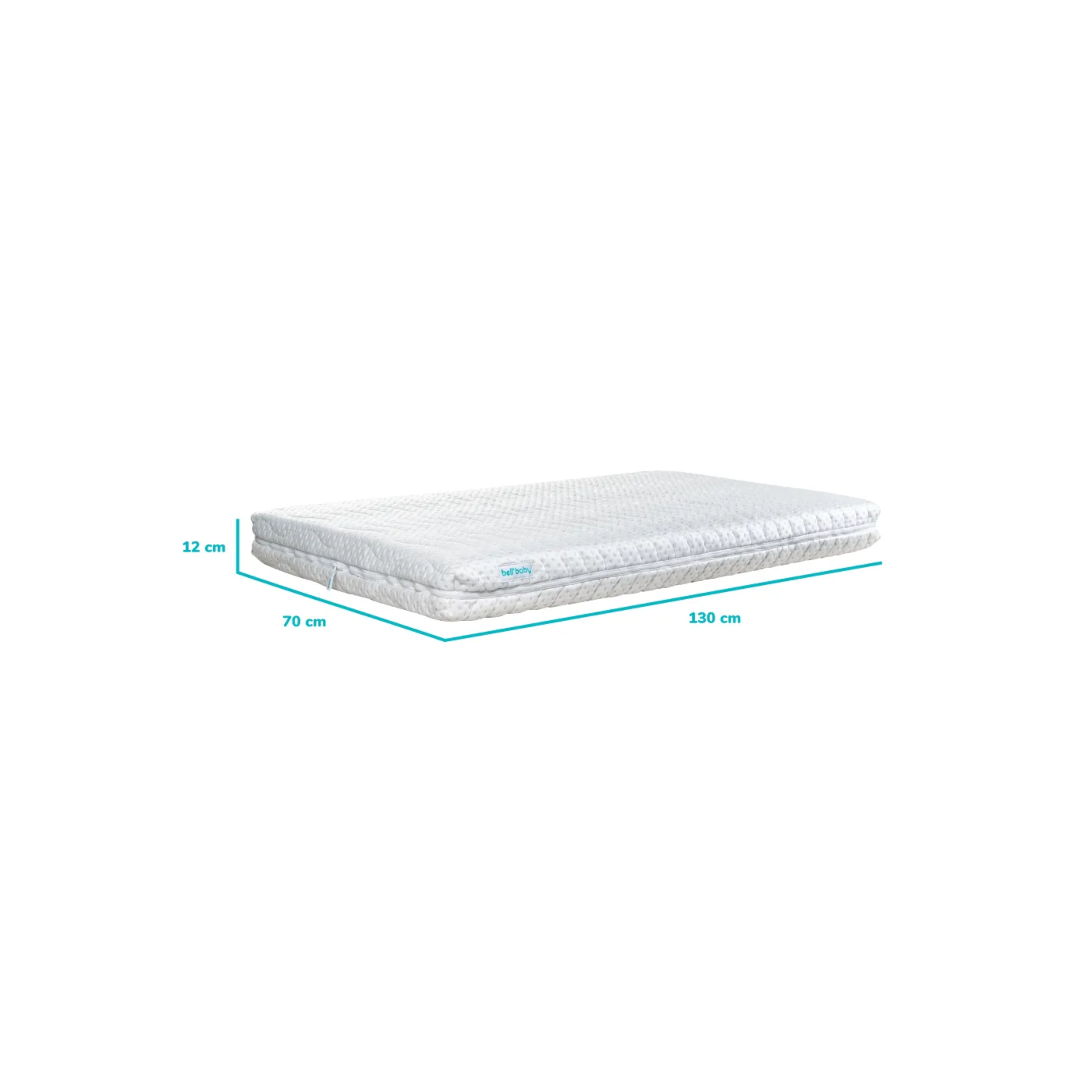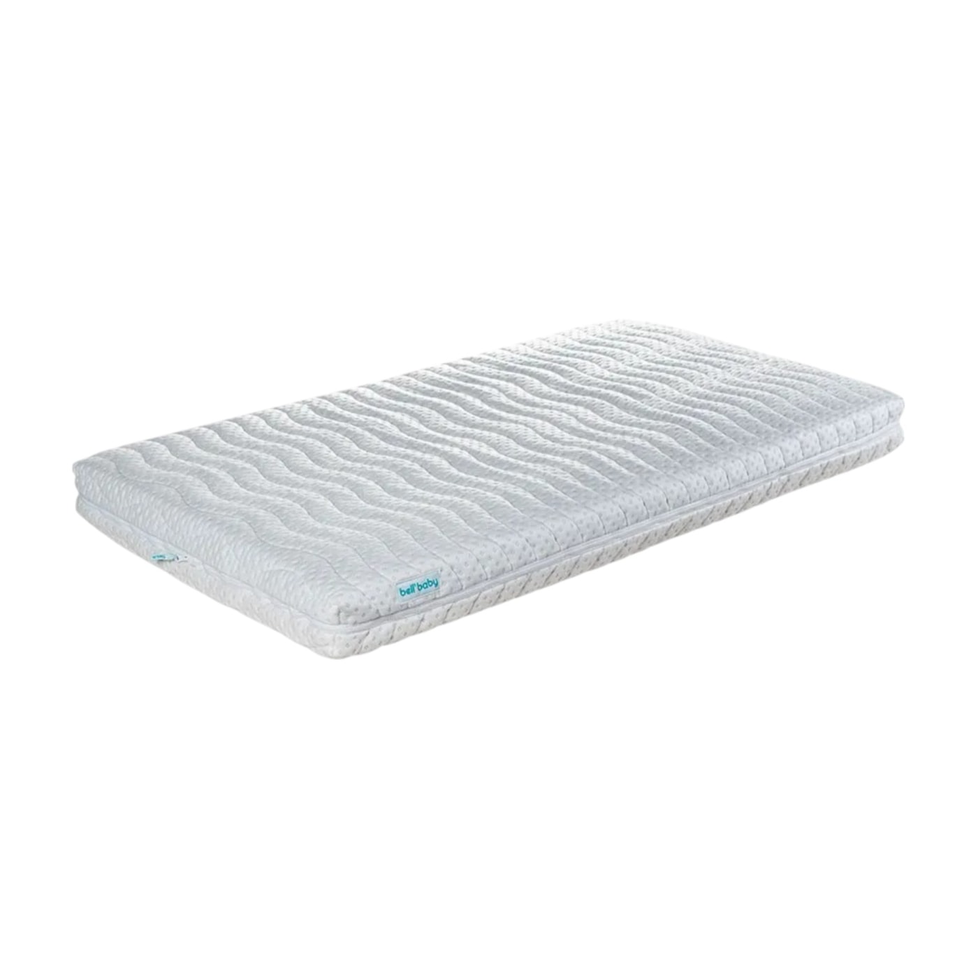 Materiais: O colchão para berço bell’baby é produzido com matérias-primas seguras e de altíssima qualidade: placa de puro látex 100% natural de 10 cm de altura e com borda de proteção, a tecnológica malha Triple Fresh com certificado internacional Oeko-Tex® Standard 100 e forro em percal 100% algodão. Látex 100% Natural D70: O látex bell’baby é de altíssima qualidade e totalmente natural. Feito com 70kg/m³de puro látex, é o material responsável por proporcionar o conforto diferenciado e incomparável do colchão, que pode ser sentido já ao tocá-lo.