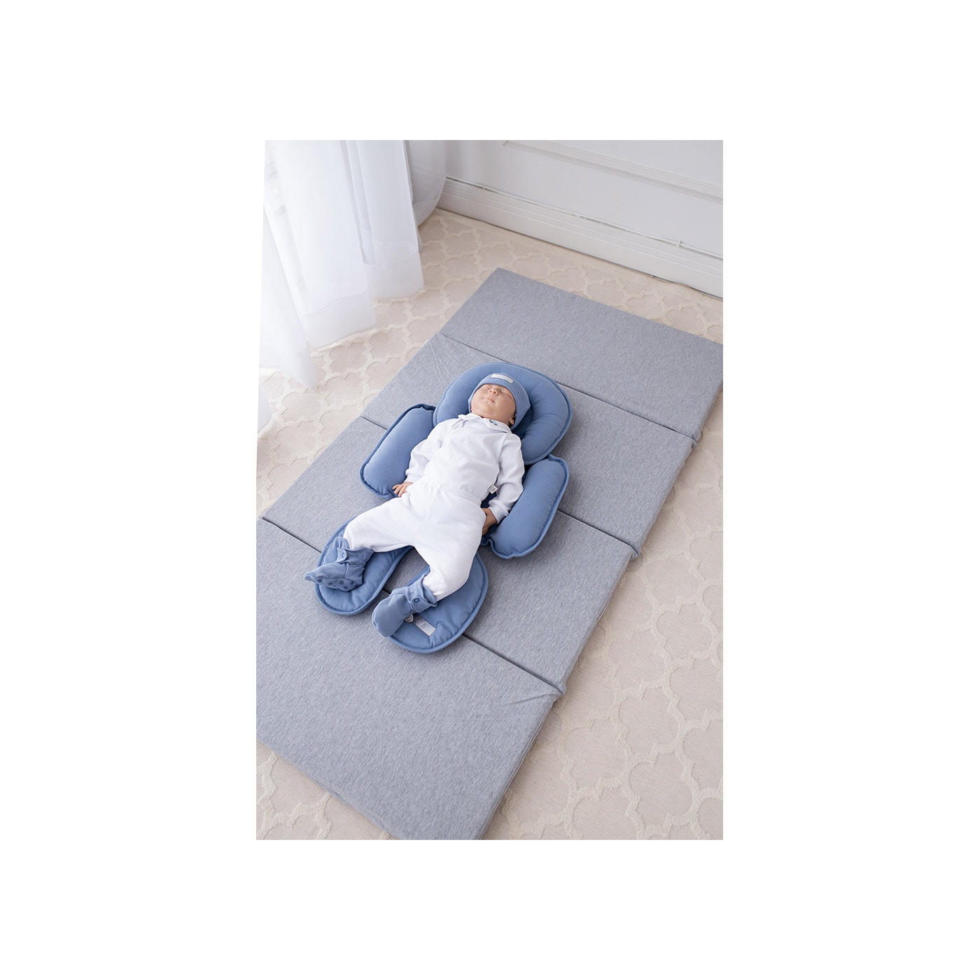 Feito em malha com espumas forradas de 3 cm com D16 que saem para lavagem. Ele é dobrável e compacto, especialmente para deixar o berço muito mais confortável. Capa retirável para lavar. É fácil de colocar e retirar, fácil de lavar e fácil de transportar.