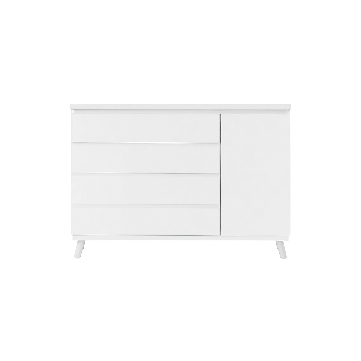 1 Cômoda Badá 4 Gavetas Com Porta com Puxador Cava e Pés Fixos