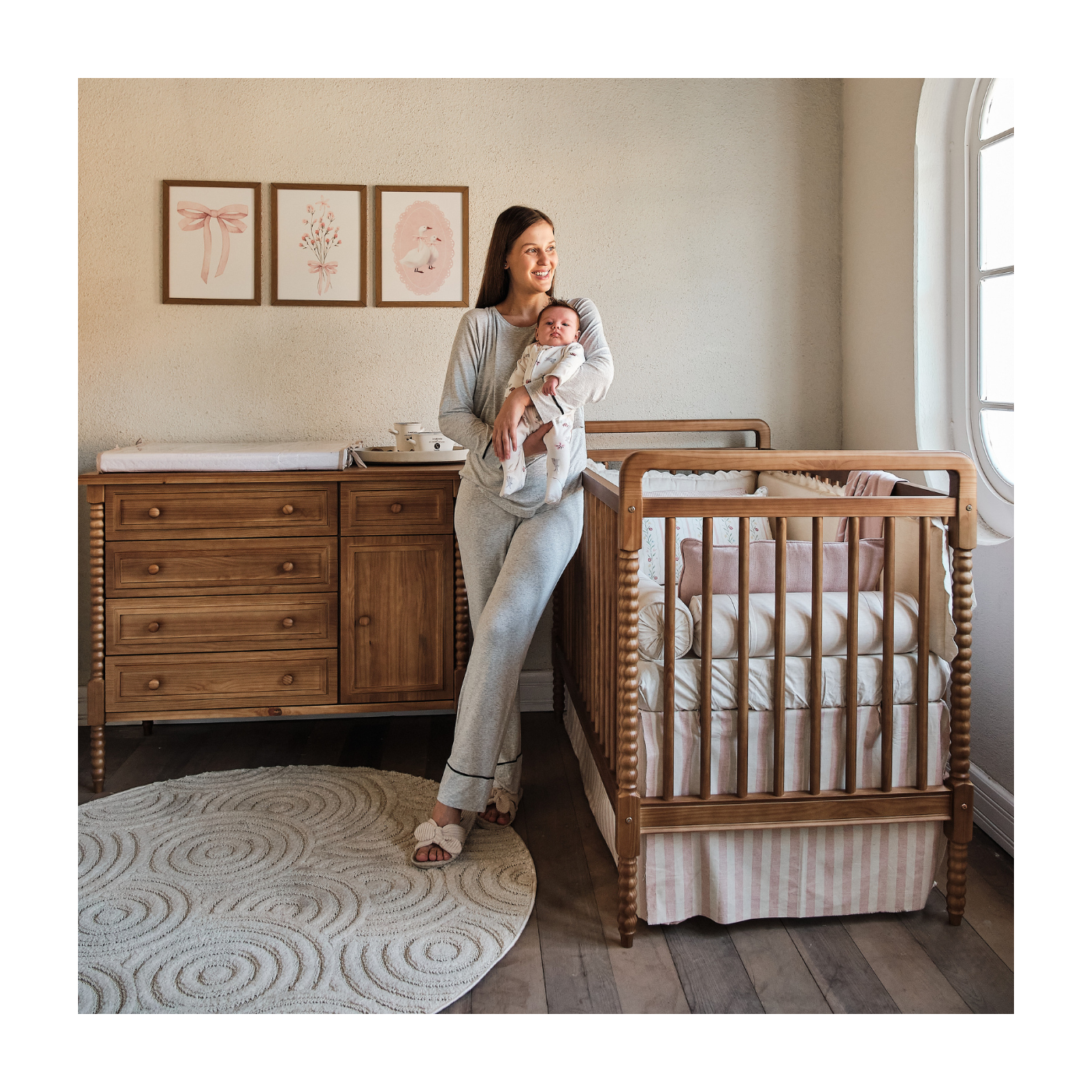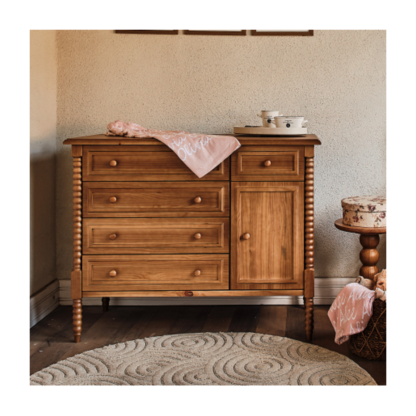 A Cômoda Dominica expressa o design afetivo em uma estética vintage repaginada, trazendo cantos arredondados, proporções equilibradas e um visual acolhedor. Com personalidade marcante e acabamento delicado, ela complementa o quarto do bebê com elegância e funcionalidade.