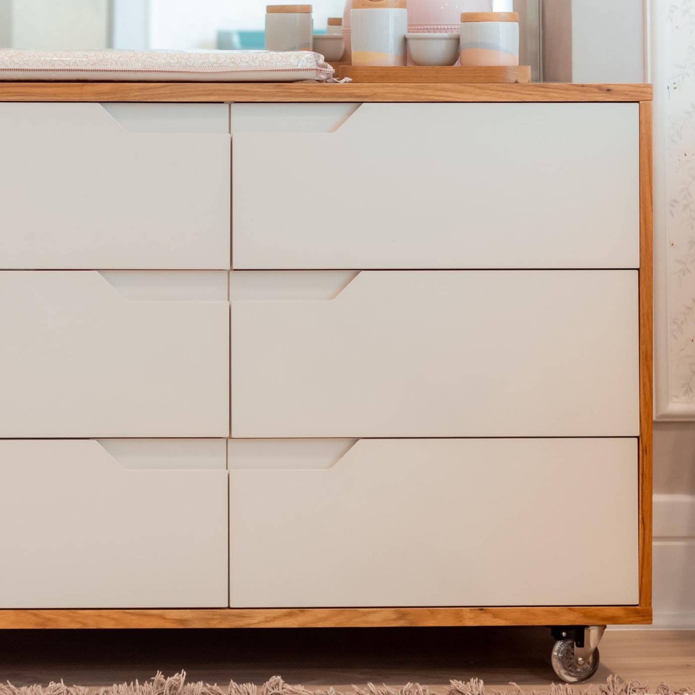 Espaço Amplo e Funcional: Com seis gavetas generosas, nossa cômoda oferece amplo espaço de armazenamento para as roupas, fraldas e acessórios do seu bebê, mantendo tudo organizado e ao alcance das mãos. Sua largura de 1,25 metros proporciona espaço suficiente para acomodar o trocador e o kit higiene, garantindo praticidade e conforto durante as trocas de fraldas e cuidados diários.