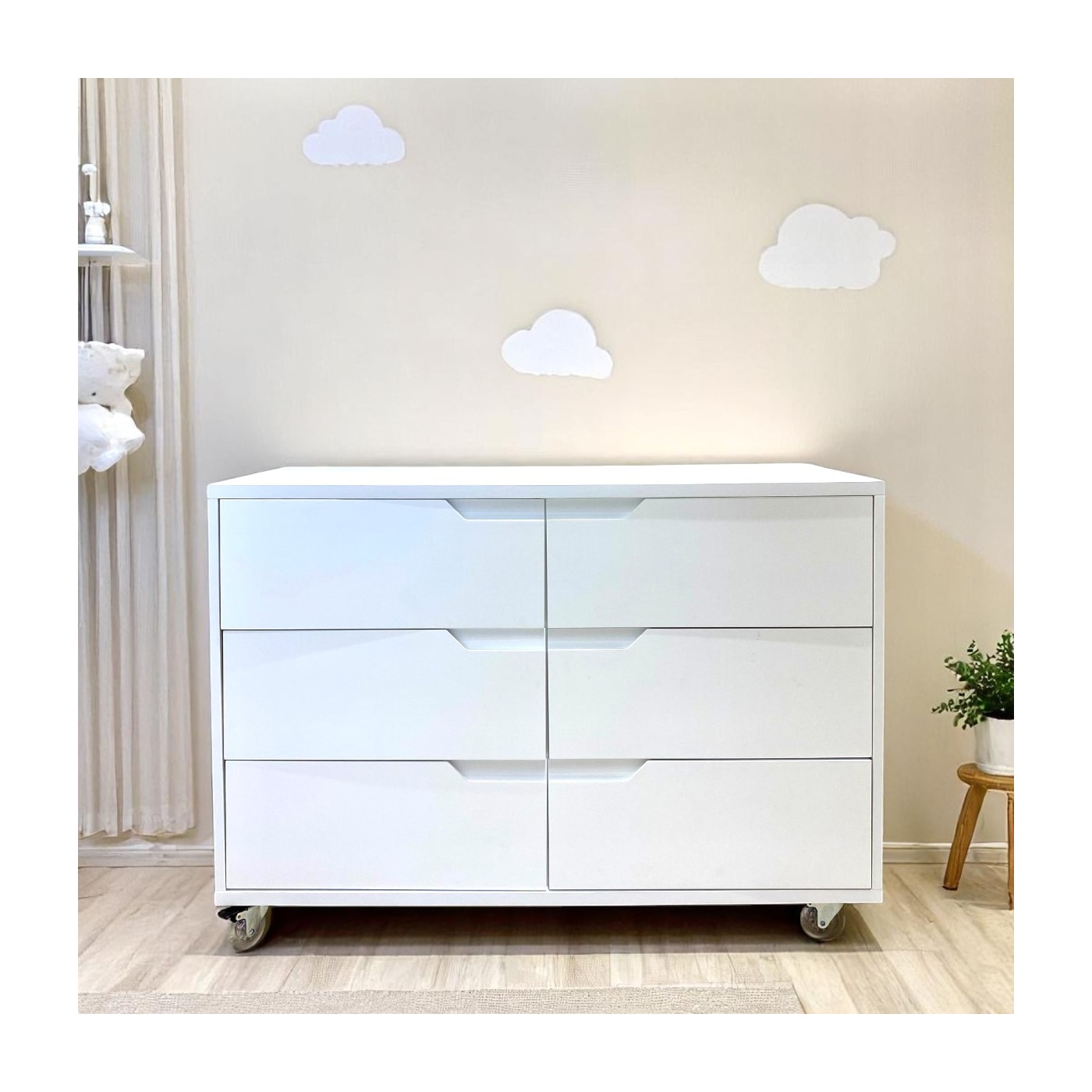 Espaço Amplo e Funcional: Com seis gavetas generosas, nossa cômoda oferece amplo espaço de armazenamento para as roupas, fraldas e acessórios do seu bebê, mantendo tudo organizado e ao alcance das mãos. Sua largura de 1,25 metros proporciona espaço suficiente para acomodar o trocador e o kit higiene, garantindo praticidade e conforto durante as trocas de fraldas e cuidados diários.