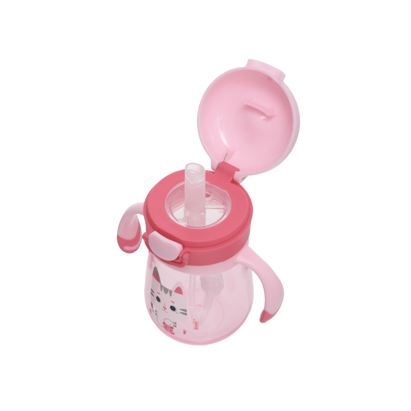 Copo Infantil com Alça e Canudo Filhotiis Gato Mia 300ml