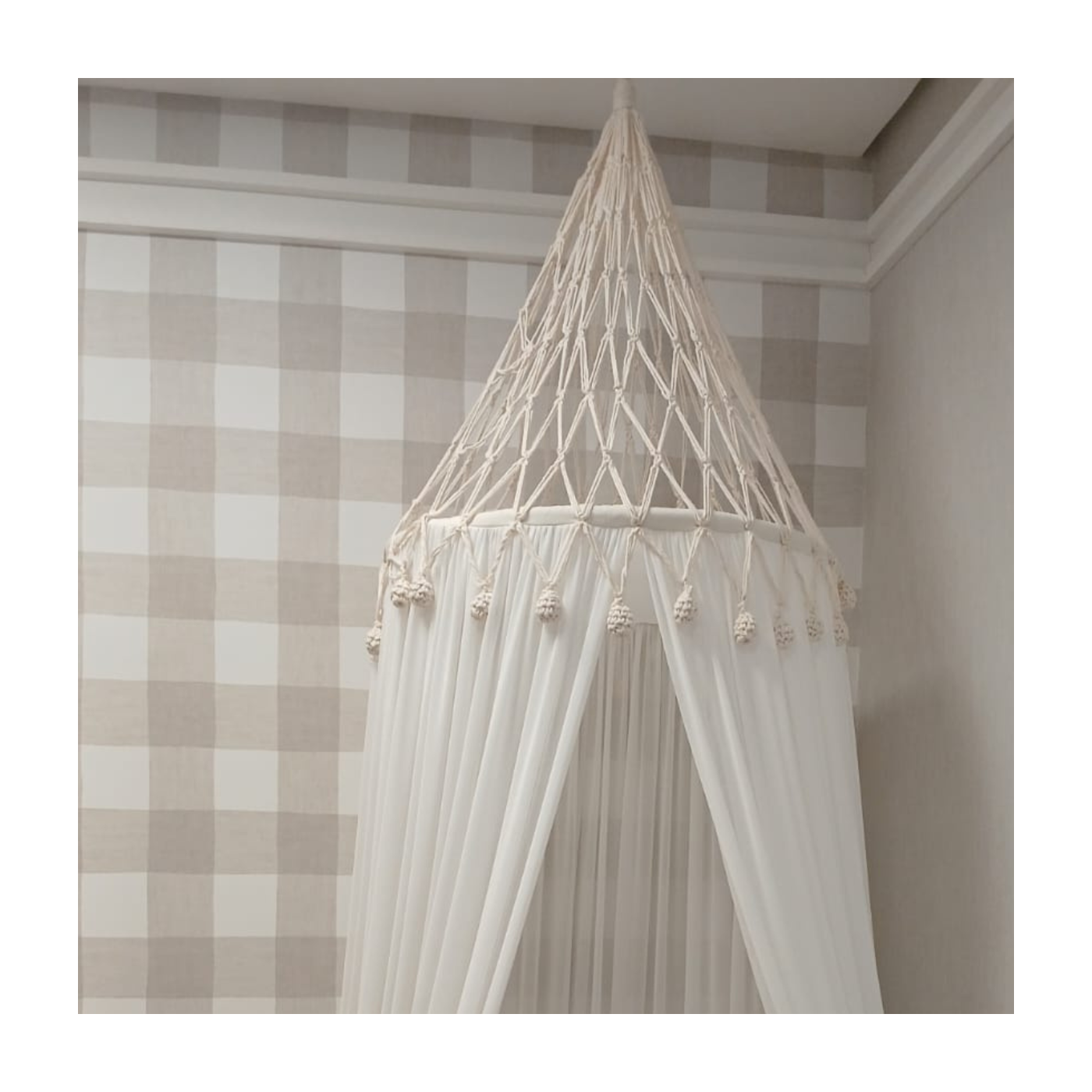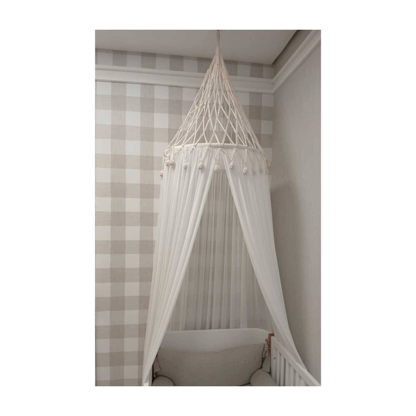Um toque de sonho para transformar o quarto do bebê em um verdadeiro refúgio de aconchego e estilo. O Enfeite Cabana Mosquiteiro une beleza e funcionalidade em uma peça que vai além da proteção: ele decora com poesia.