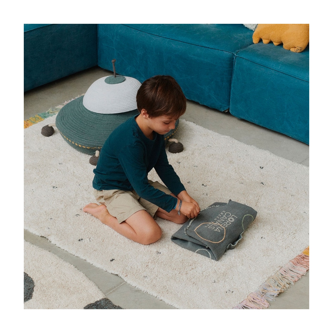 Feito à mão: Se você possui um dos nossos tapetes exclusivos para casa, sabe que é uma peça única. Porque é feito à mão por artesãos indianos e não é resultado de produção em massa. Cada produto Lorena Canals é cuidadosamente feito à mão por nossos artesãos em nossa própria fábrica na Índia usando técnicas artesanais ancestrais. O resultado é uma obra de arte com pequenas variações inerentes ao trabalho artesanal. Encontremos beleza na imperfeição e apreciemos o trabalho manual!