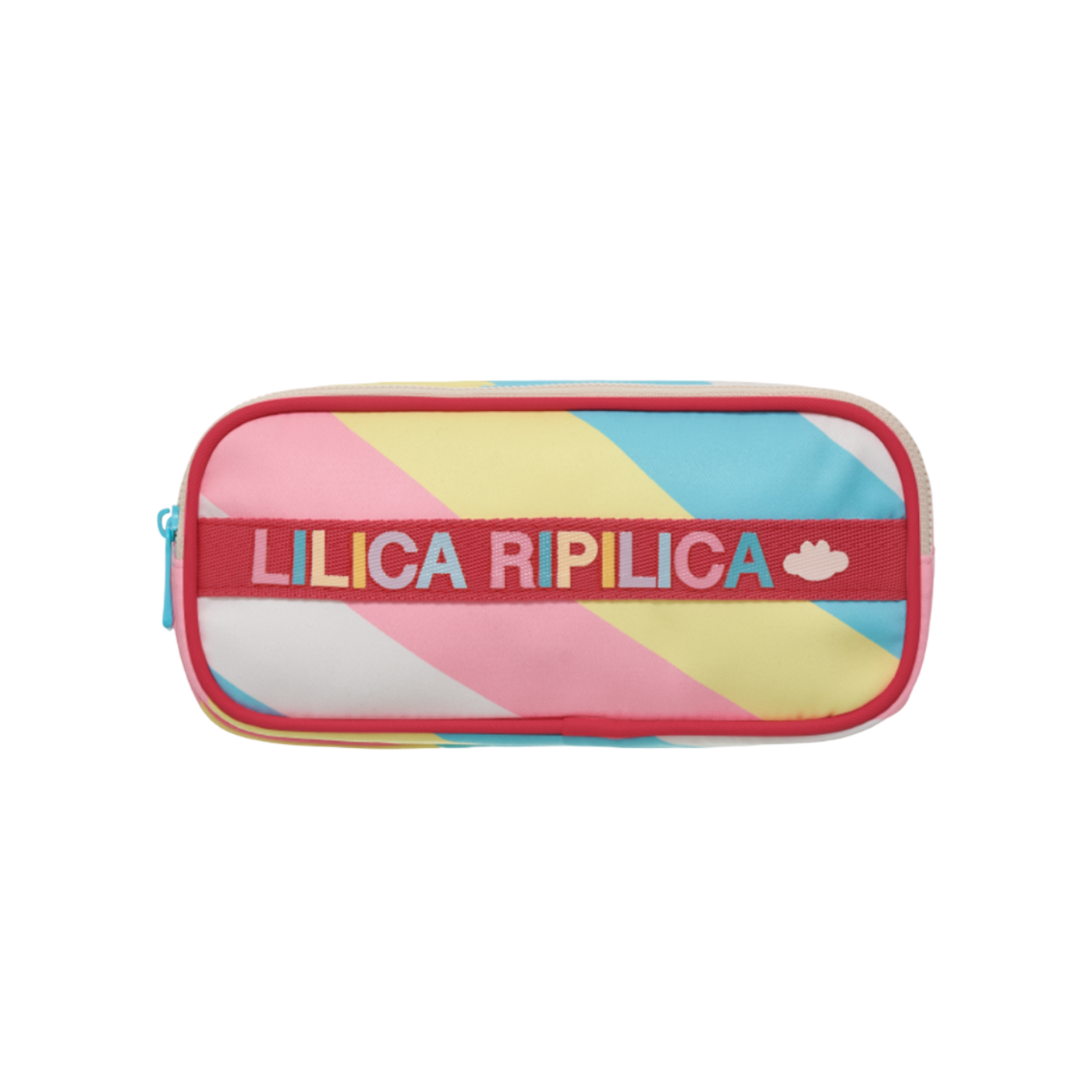 A estampa “Vibrant” traz listras diagonais em tons de rosa, amarelo e azul, criando um visual moderno, colorido e cheio de energia. O destaque fica por conta da faixa em tecido vermelho com a escrita “Lilica Ripilica”, que adiciona um toque exclusivo e reforça a identidade da marca.