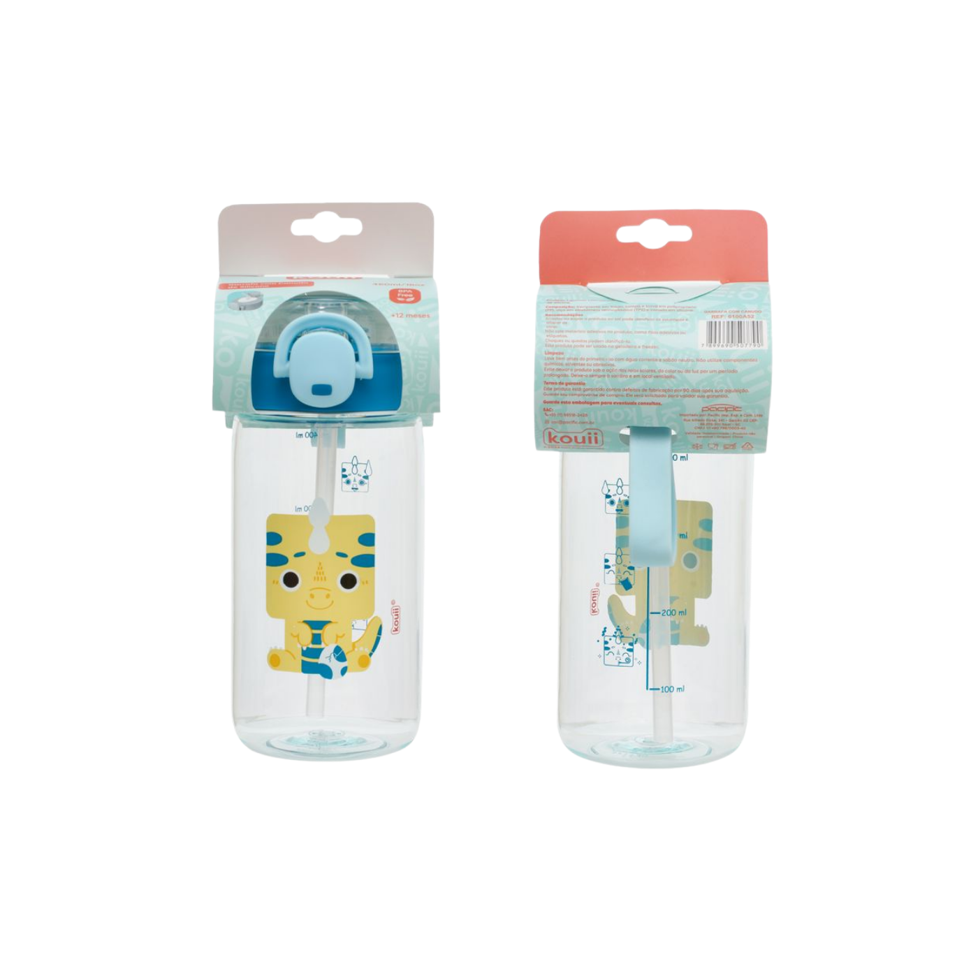 Garrafa com Canudo 460ml Dino Verde - Kouii